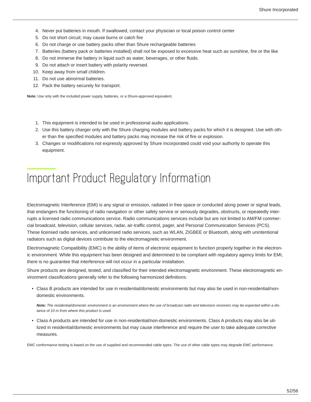 Shure products are designed, tested, and classified for their intended electromagnetic environment. These electromagnetic en