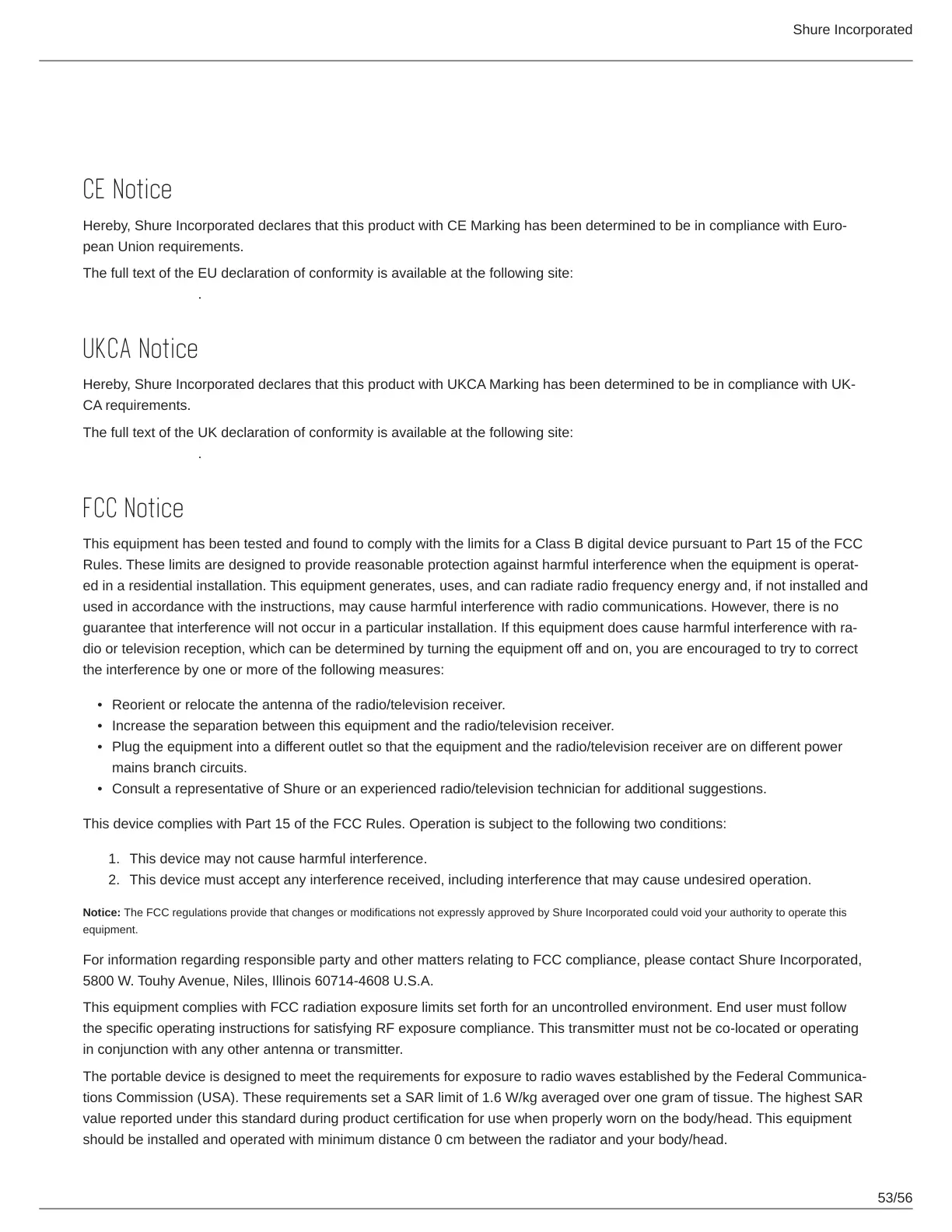 The full text of the UK declaration of conformity is available at the following site: https://www.shure.com/enGB/support/declara