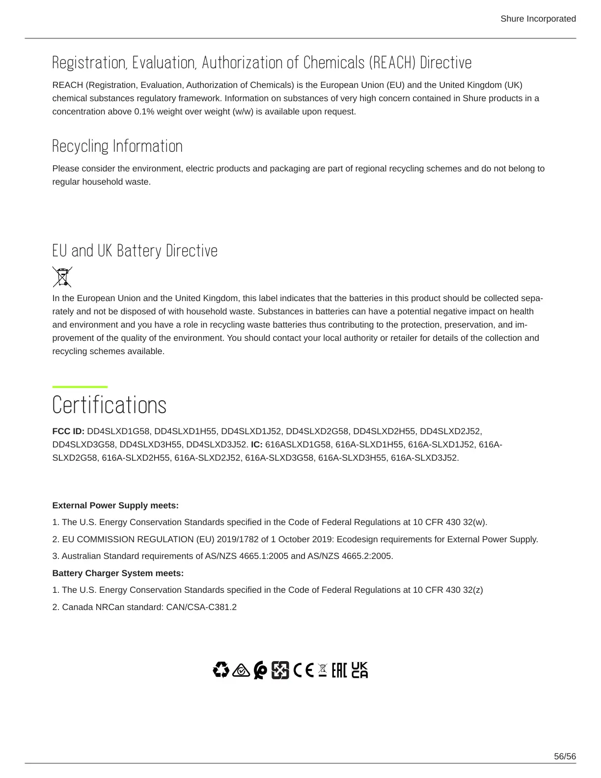 chemical substances regulatory framework. Information on substances of very high concern contained in Shure products in a