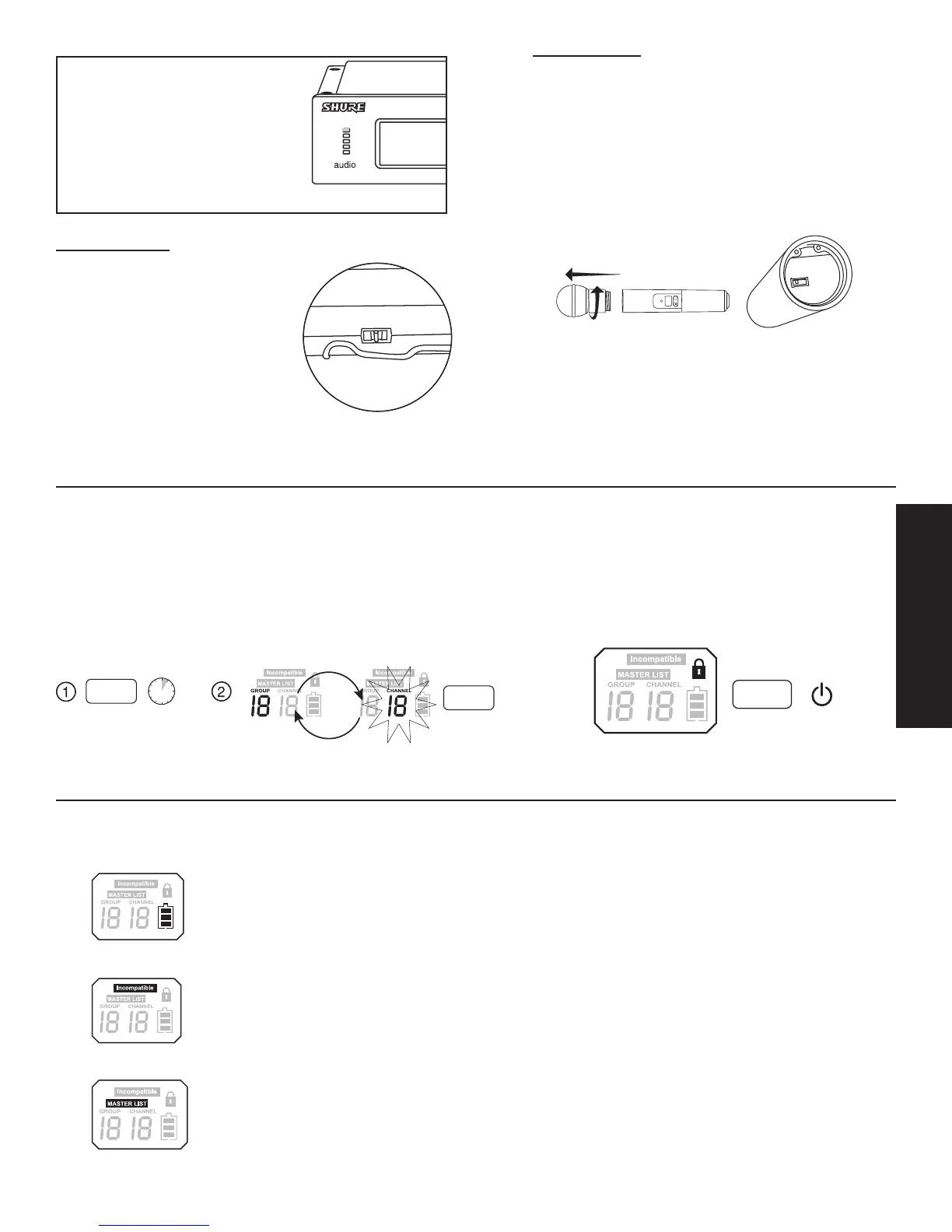 설정되어있다는것을표시합니다.Shure대리점에연락하여도움을요청