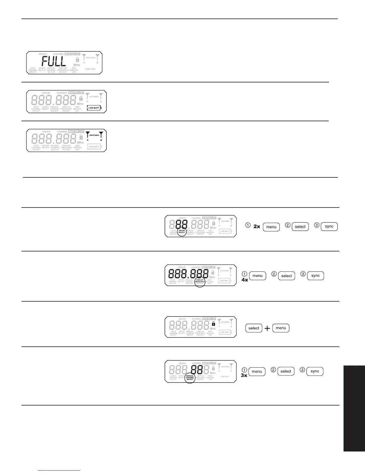 Memungkinkan pilihan manual kelompok frekuensi. Tekan select untuk menambah