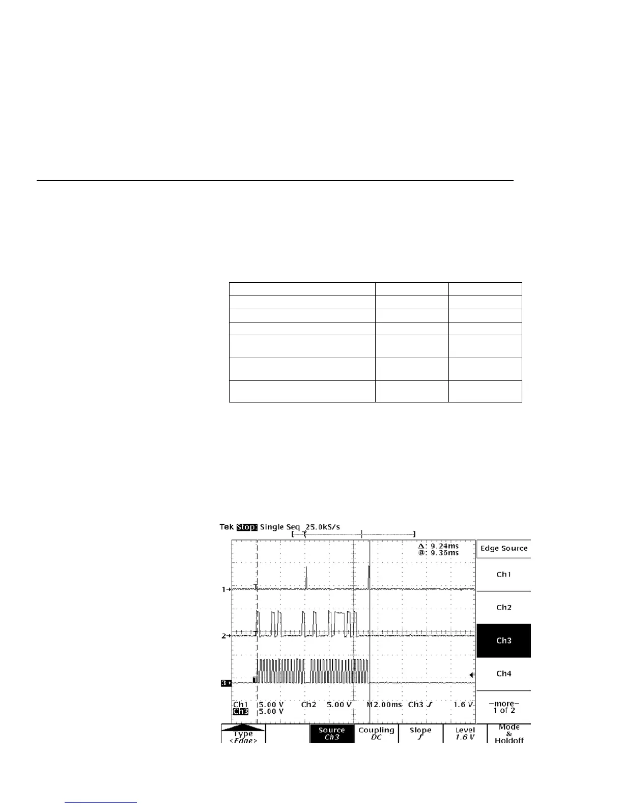 T = 0.???s: PLL data gets sent. You should see a signal similar to the graphic on an oscilloscope.