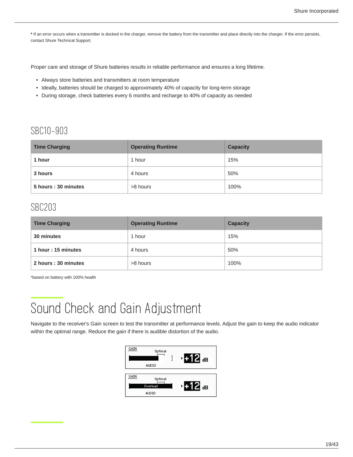Proper care and storage of Shure batteries results in reliable performance and ensures a long lifetime.