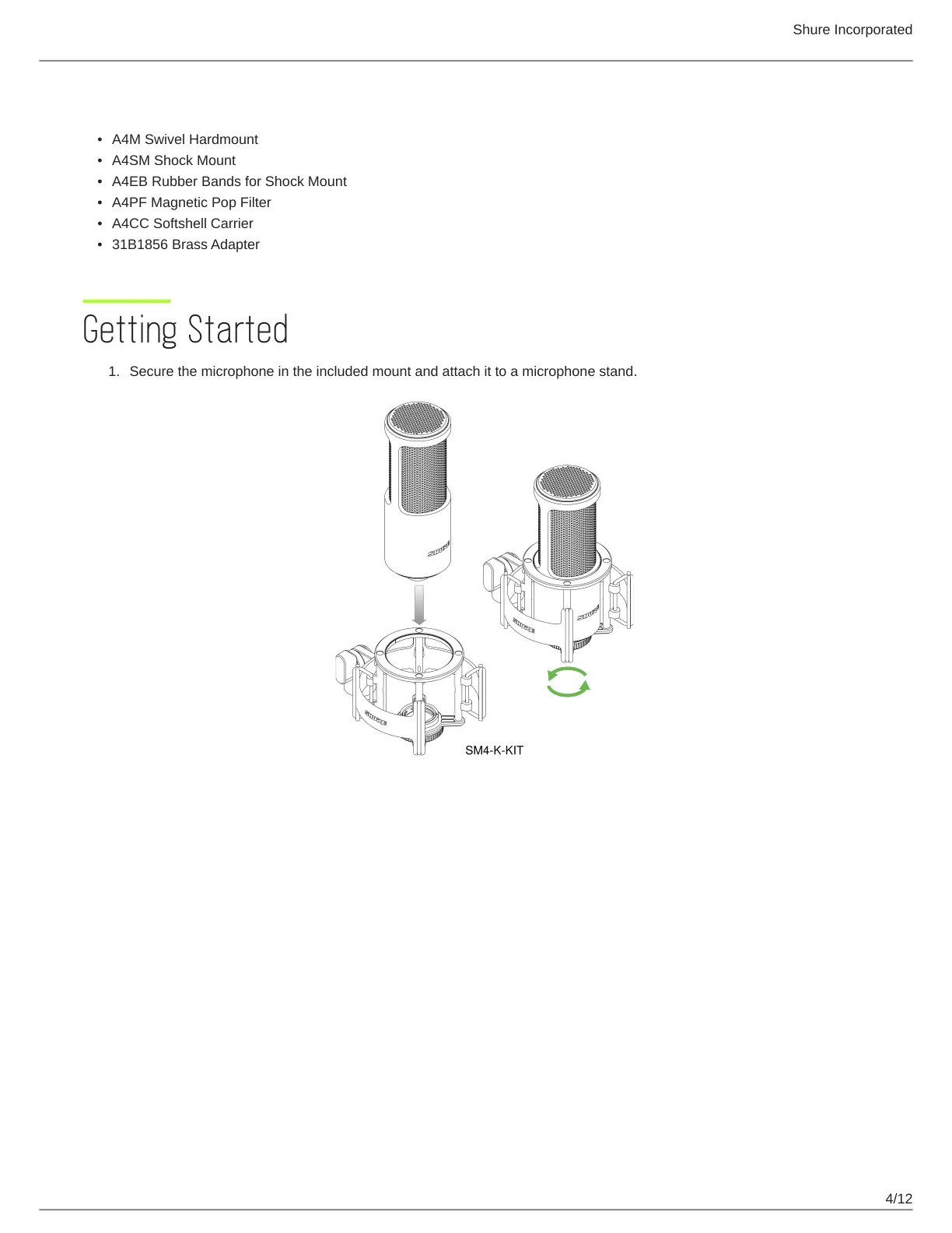 Shure SM4 - SM4 Replacement Parts; Getting Started