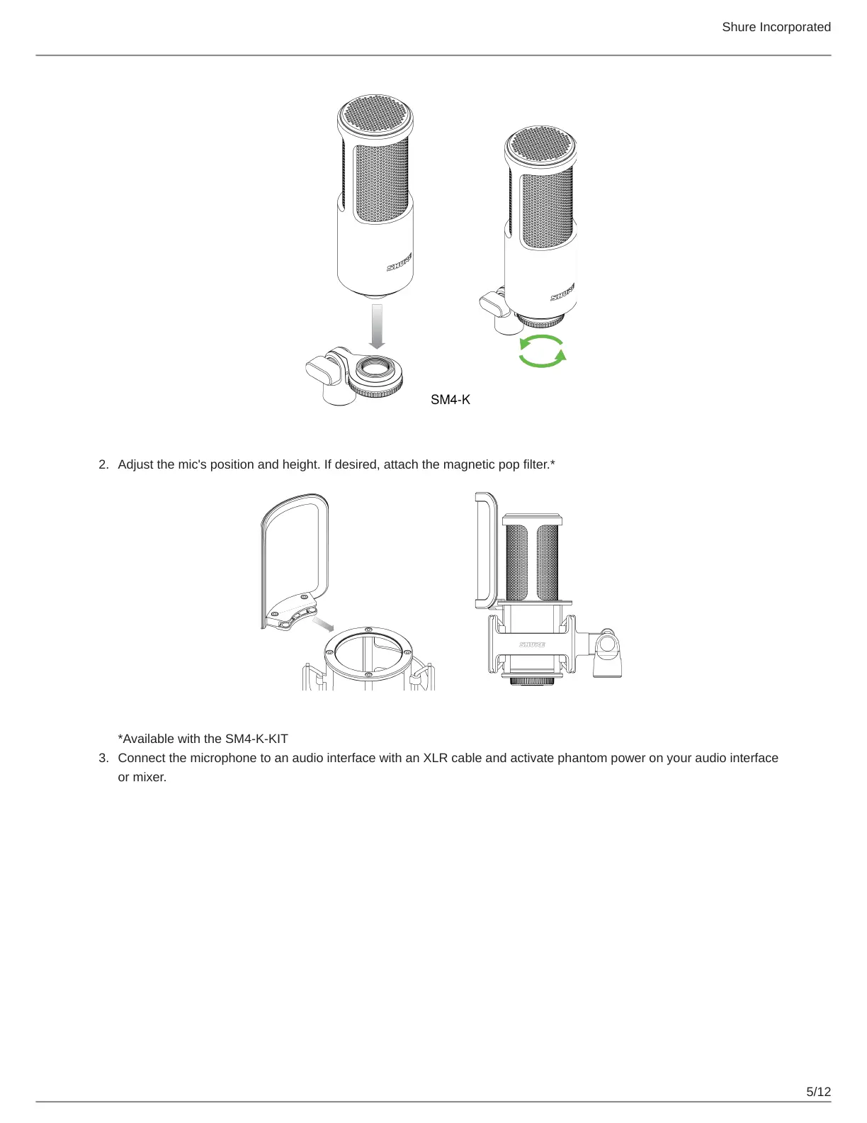Adjust the mic's position and height. If desired, attach the magnetic pop filter.*