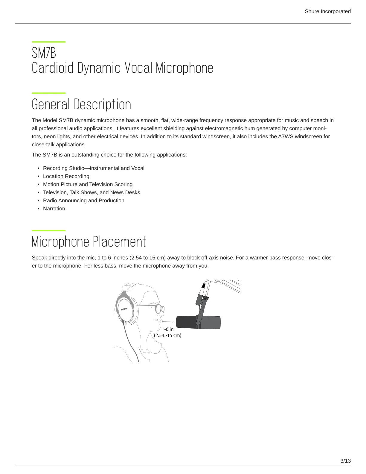 Speakdirectlyintothemic,1to6inches(2.54to15cm)awaytoblockoffaxisnoise.Forawarmerbassresponse,moveclos