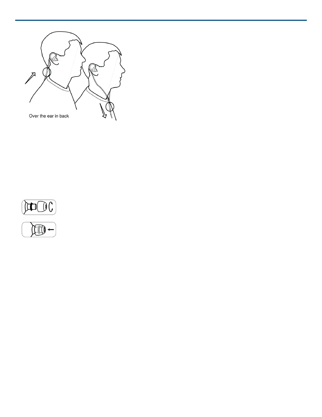 Wear the cable over the ear and secure it behind the head to help keep the earphones in place during physical ac-