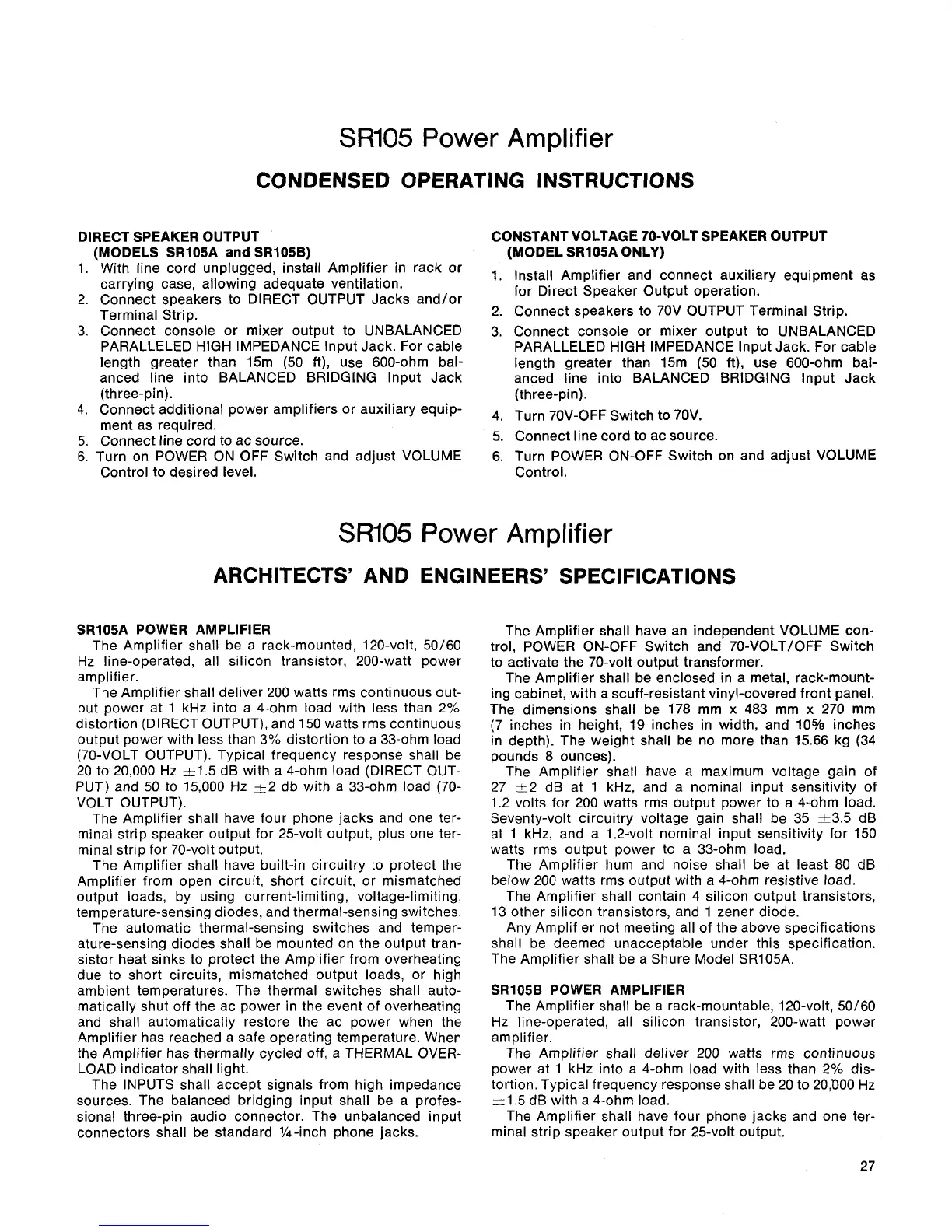 minal strip speaker output for 25-volt output.