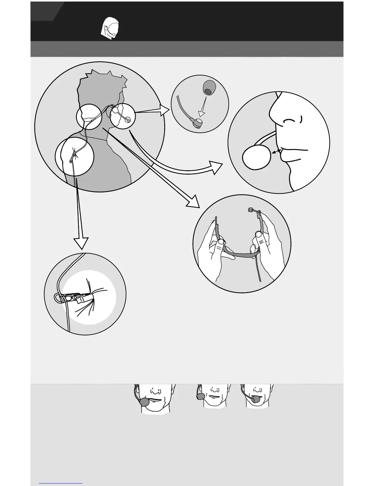 마이크의 위치를 조정하려면 프레임을 주의해서 구부리십시오.