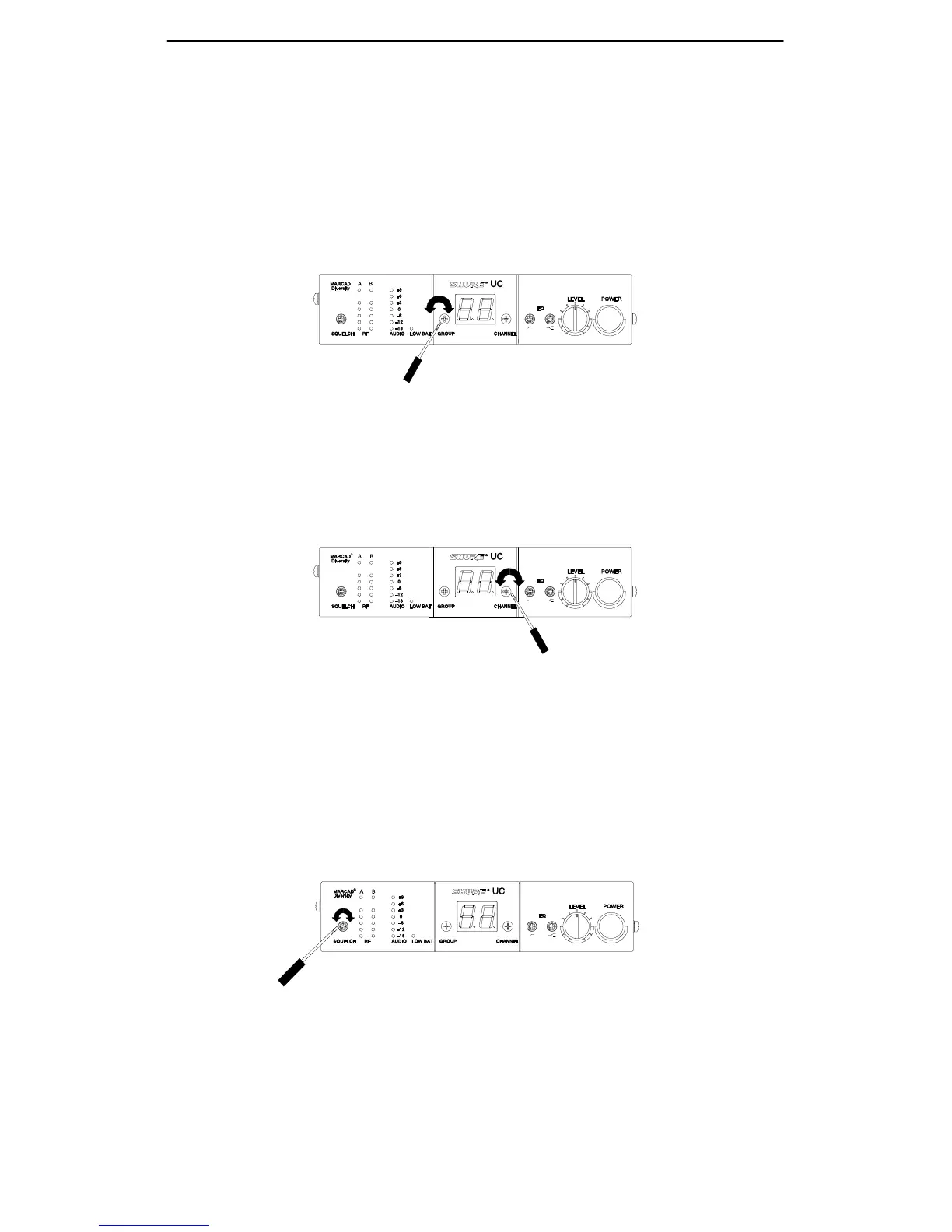 To advance the receiver Group setting, rotate the Group switch clockwise, using the supplied screwdriver. Rotate