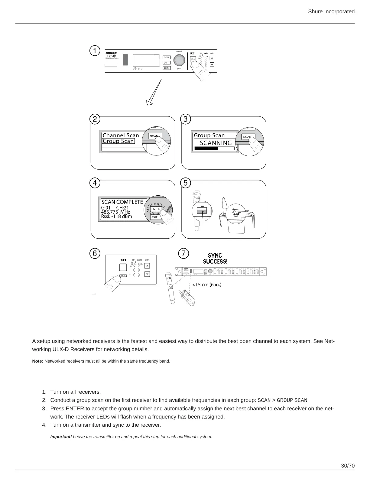 Note: Networked receivers must all be within the same frequency band.