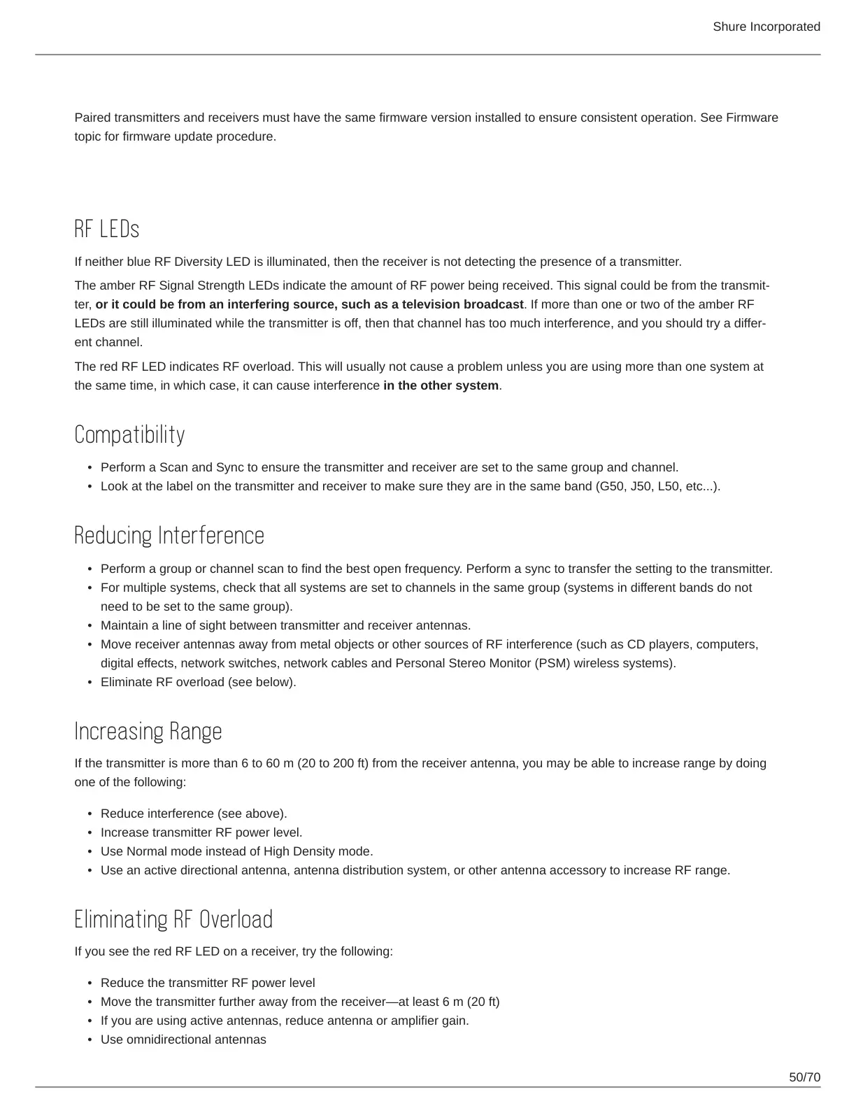 Paired transmitters and receivers must have the same firmware version installed to ensure consistent operation. See Firmware