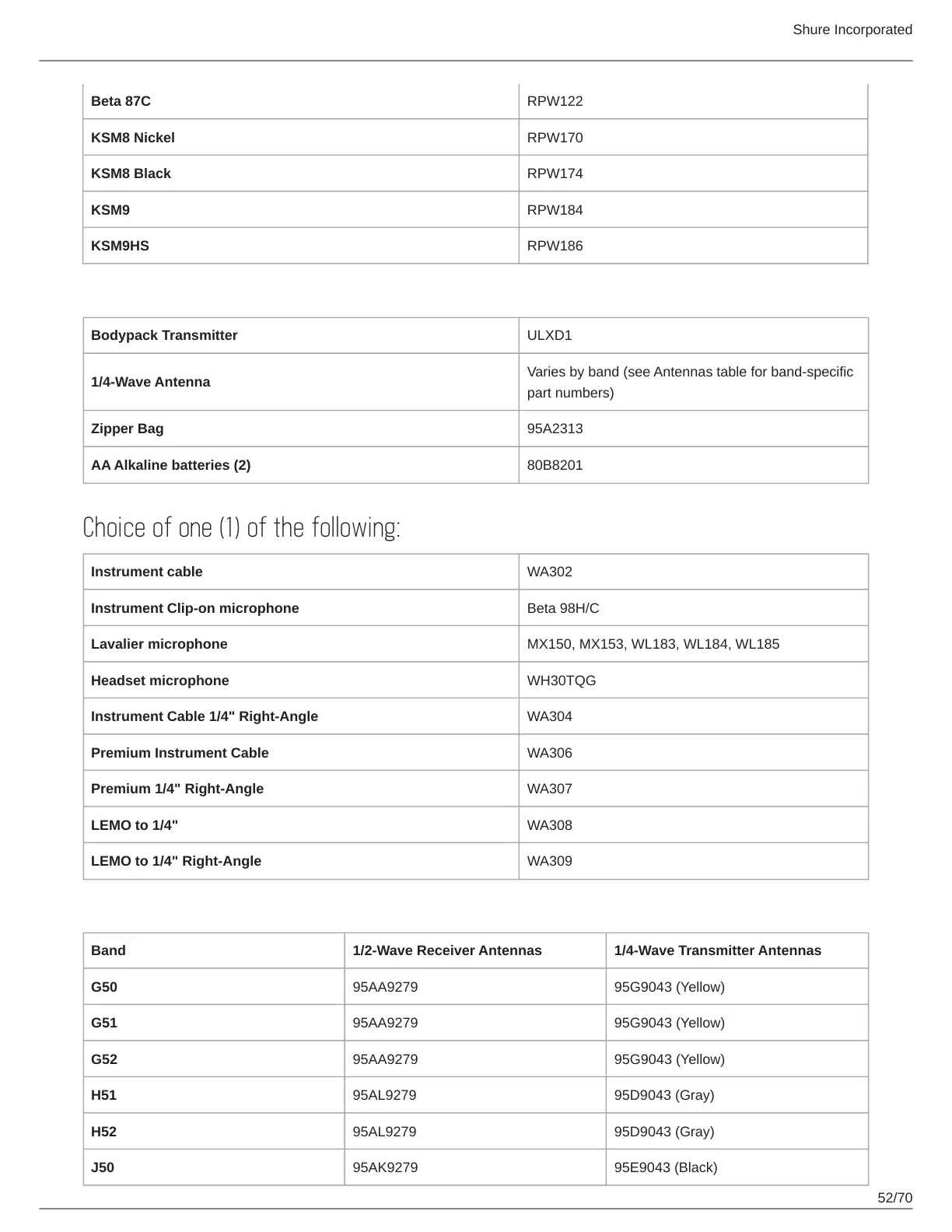 Band 1/2-Wave Receiver Antennas 1/4-Wave Transmitter Antennas