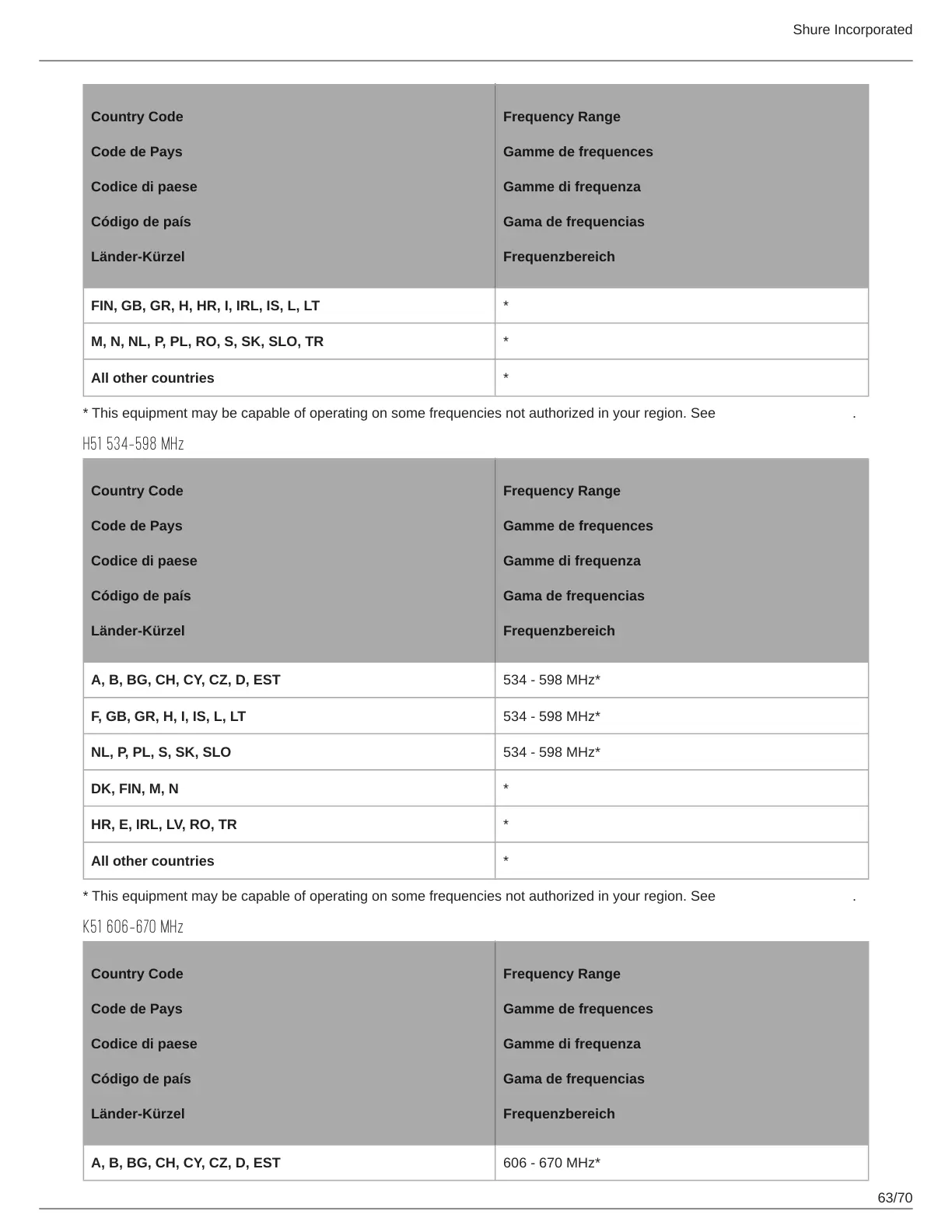 A, B, BG, CH, CY, CZ, D, EST 606 - 670 MHz*