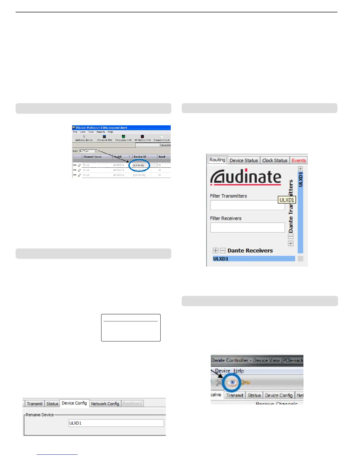 When using the receiver in a network with Shure Control (WWB6) and a Dante Controller, two Device IDs are required: one for Shure Control and one for