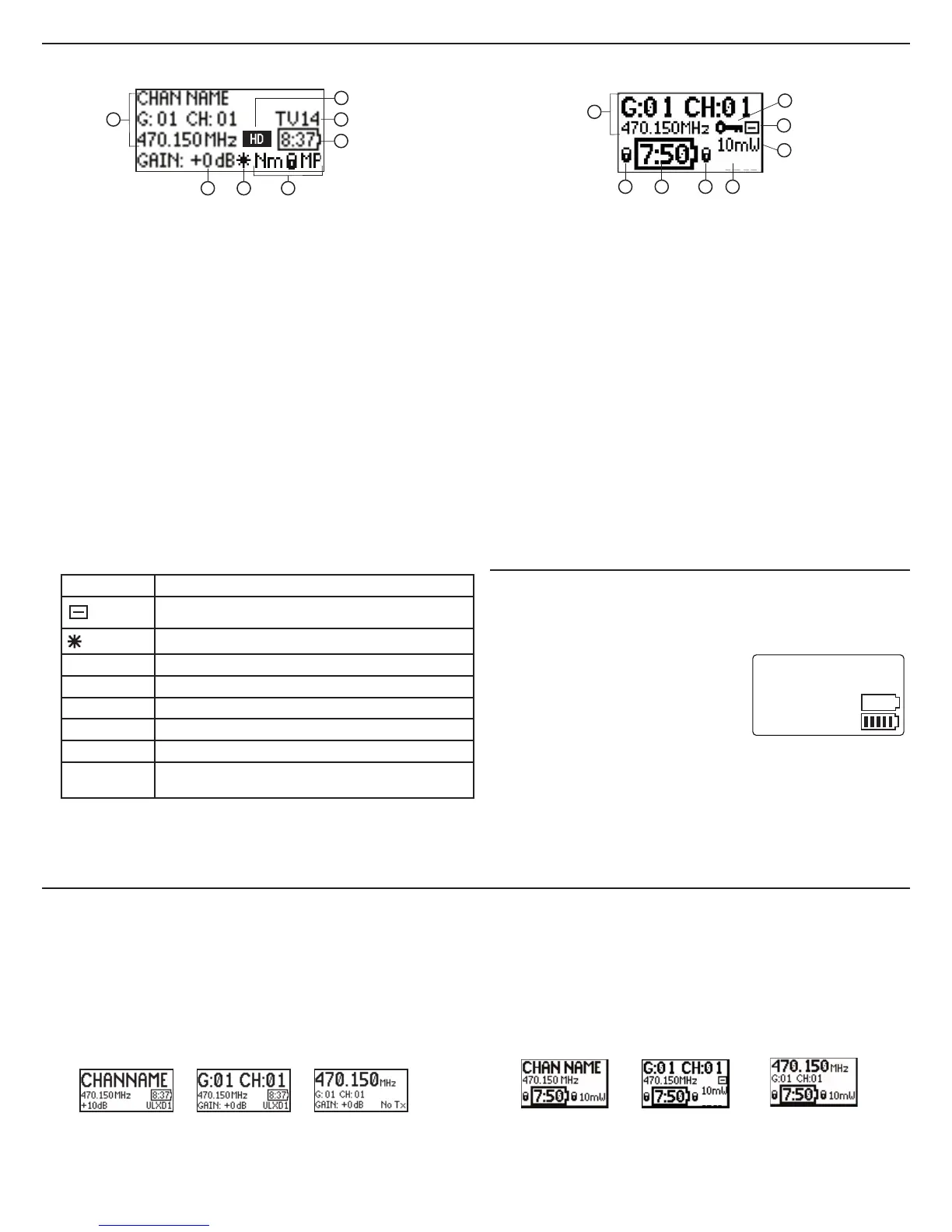 Shure SB900 battery: runtime is displayed in minutes remaining.