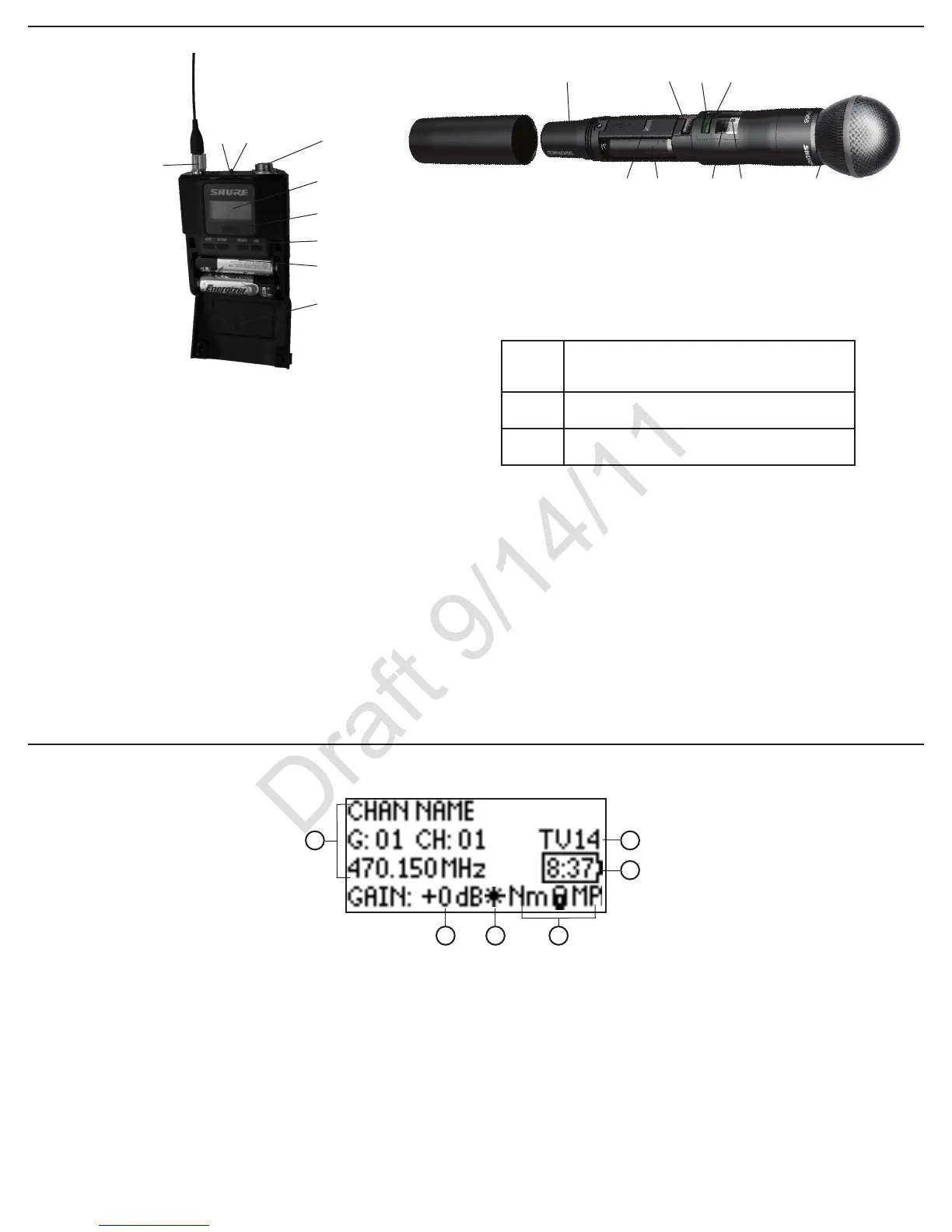 Requires Shure SB900 rechargeable battery or 2 AA batteries.