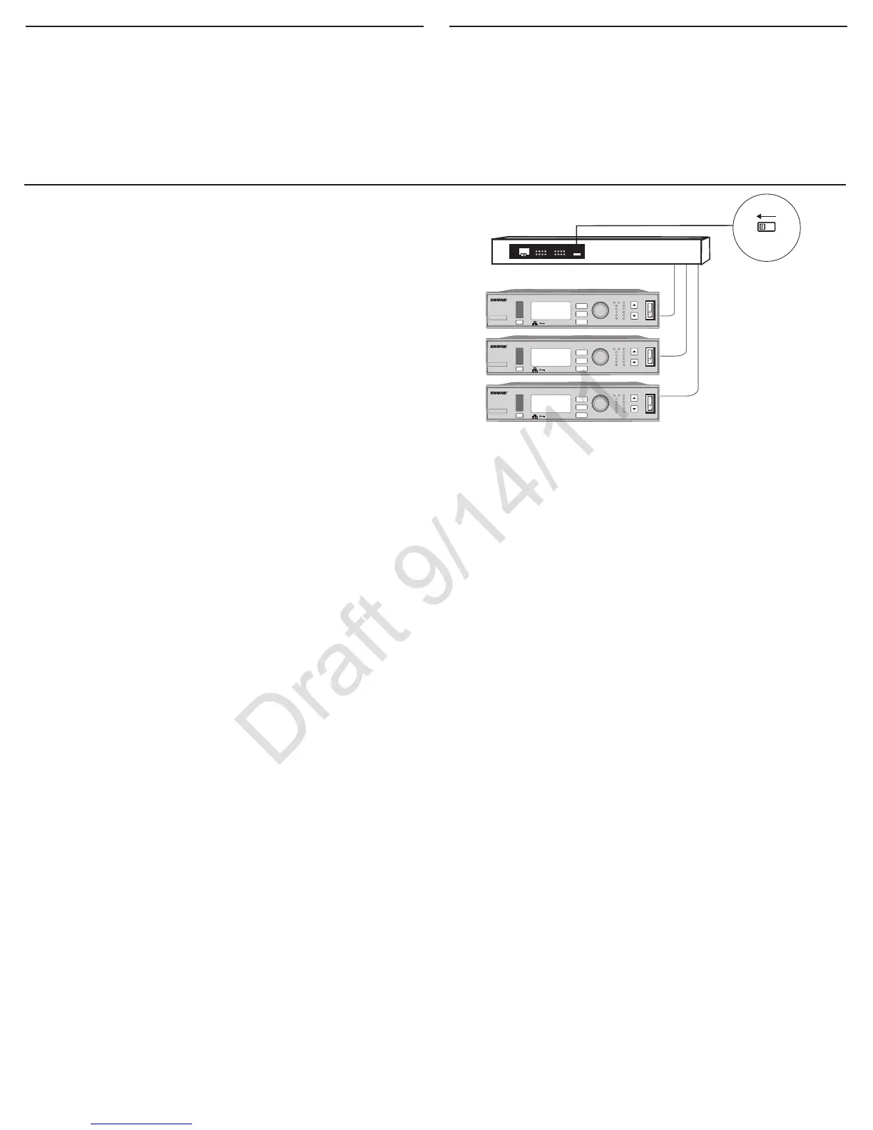 such as the Shure AXT620. Use multiple Ethernet switches to extend the net-