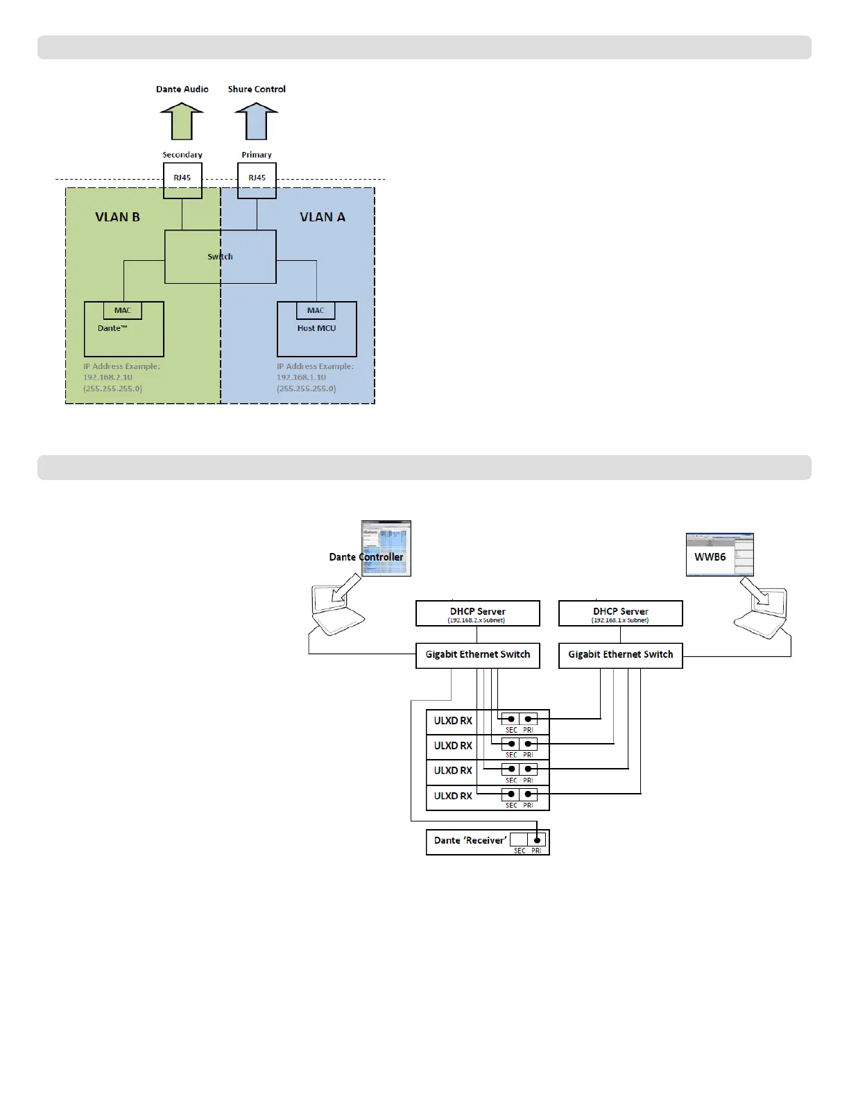 • The IP addresses for Dante and Shure Control must be on different