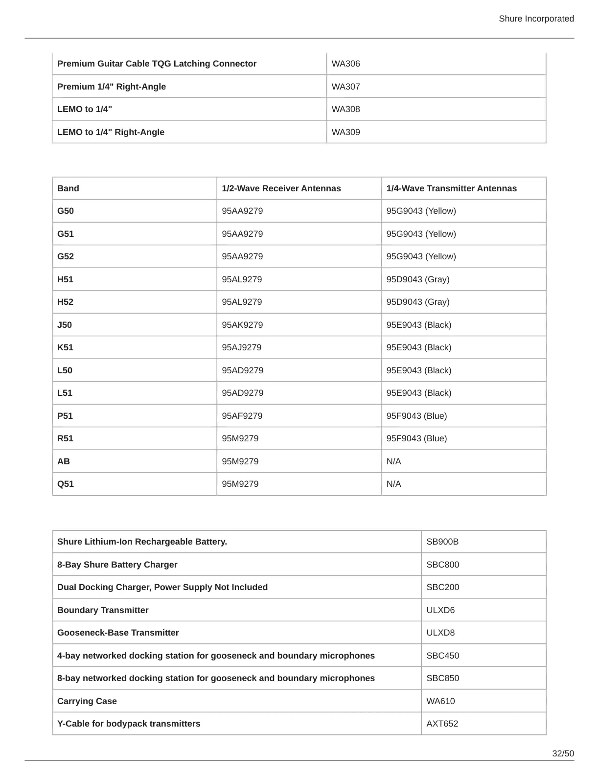 Band 1/2-Wave Receiver Antennas 1/4-Wave Transmitter Antennas