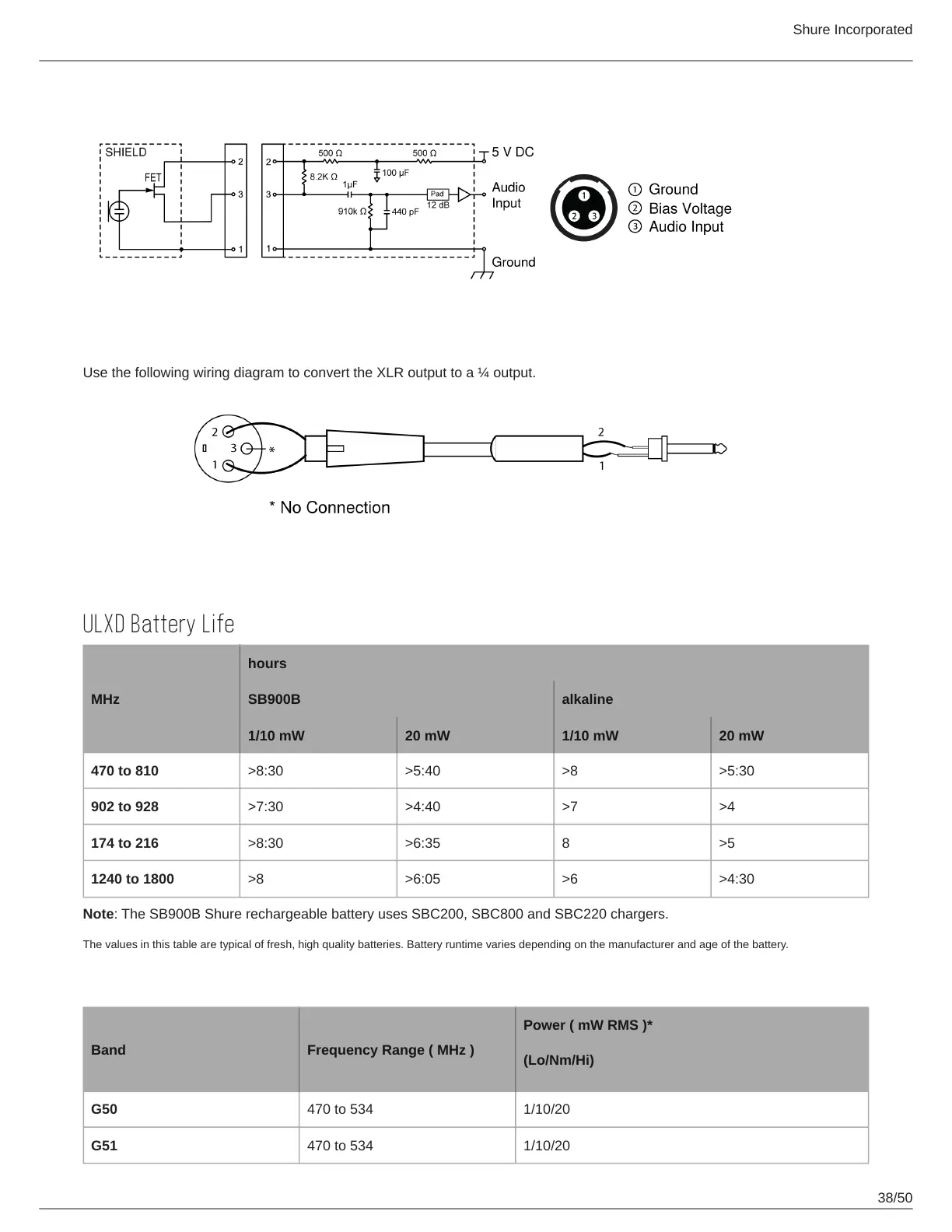 Note: The SB900B Shure rechargeable battery uses SBC200, SBC800 and SBC220 chargers.
