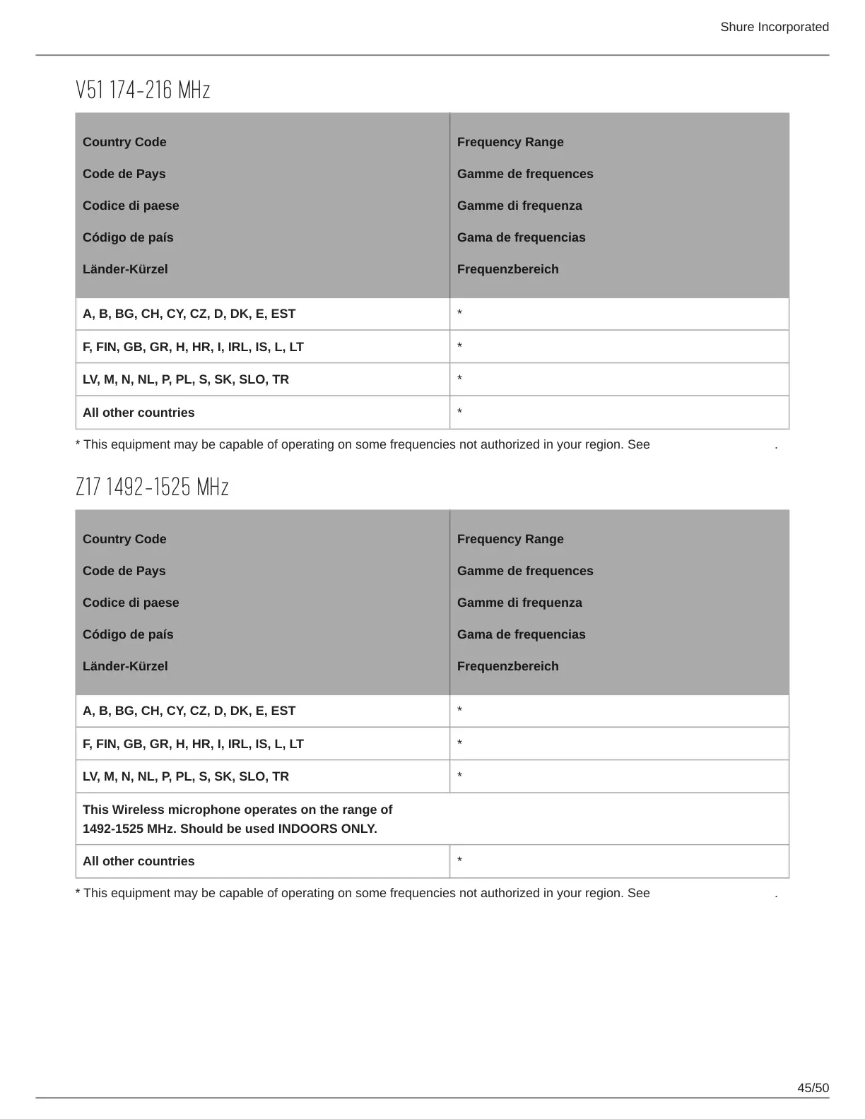 * This equipment may be capable of operating on some frequencies not authorized in your region. See Licensing Information.