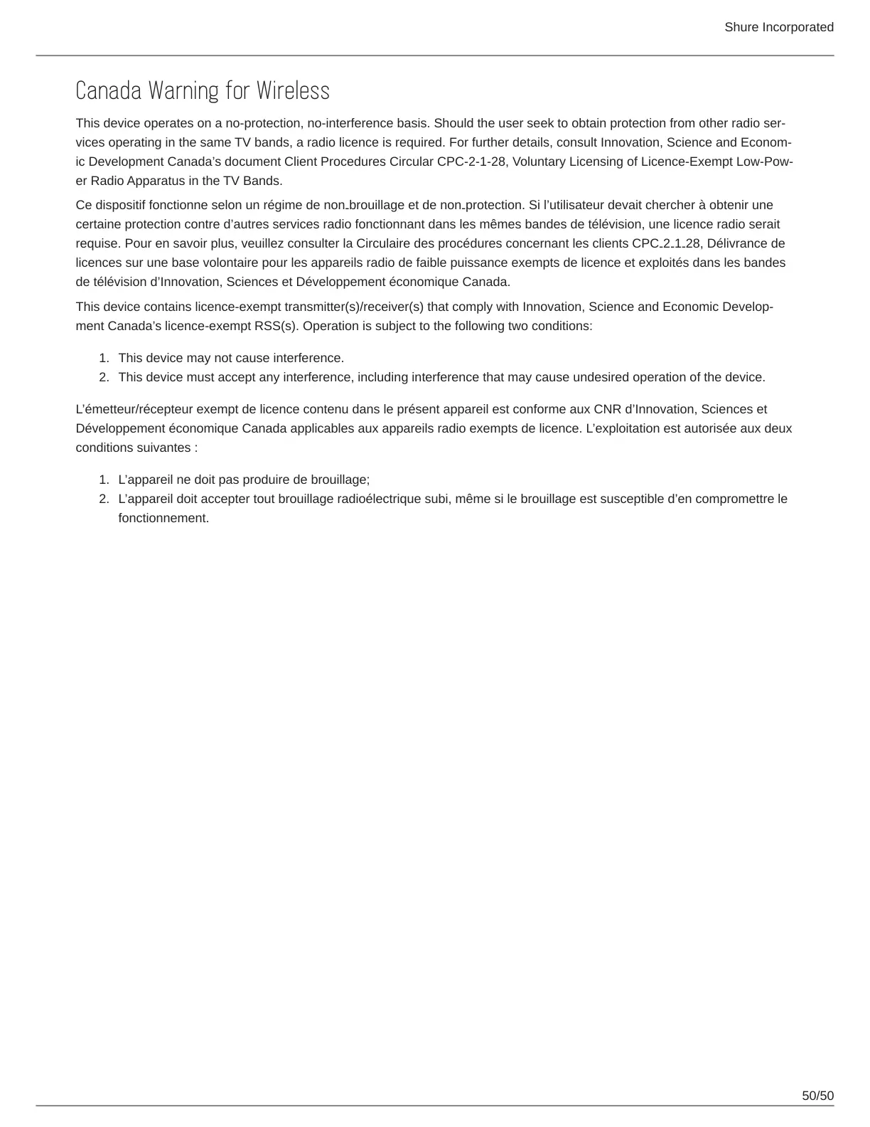vices operating in the same TV bands, a radio licence is required. For further details, consult Innovation, Science and Econom
