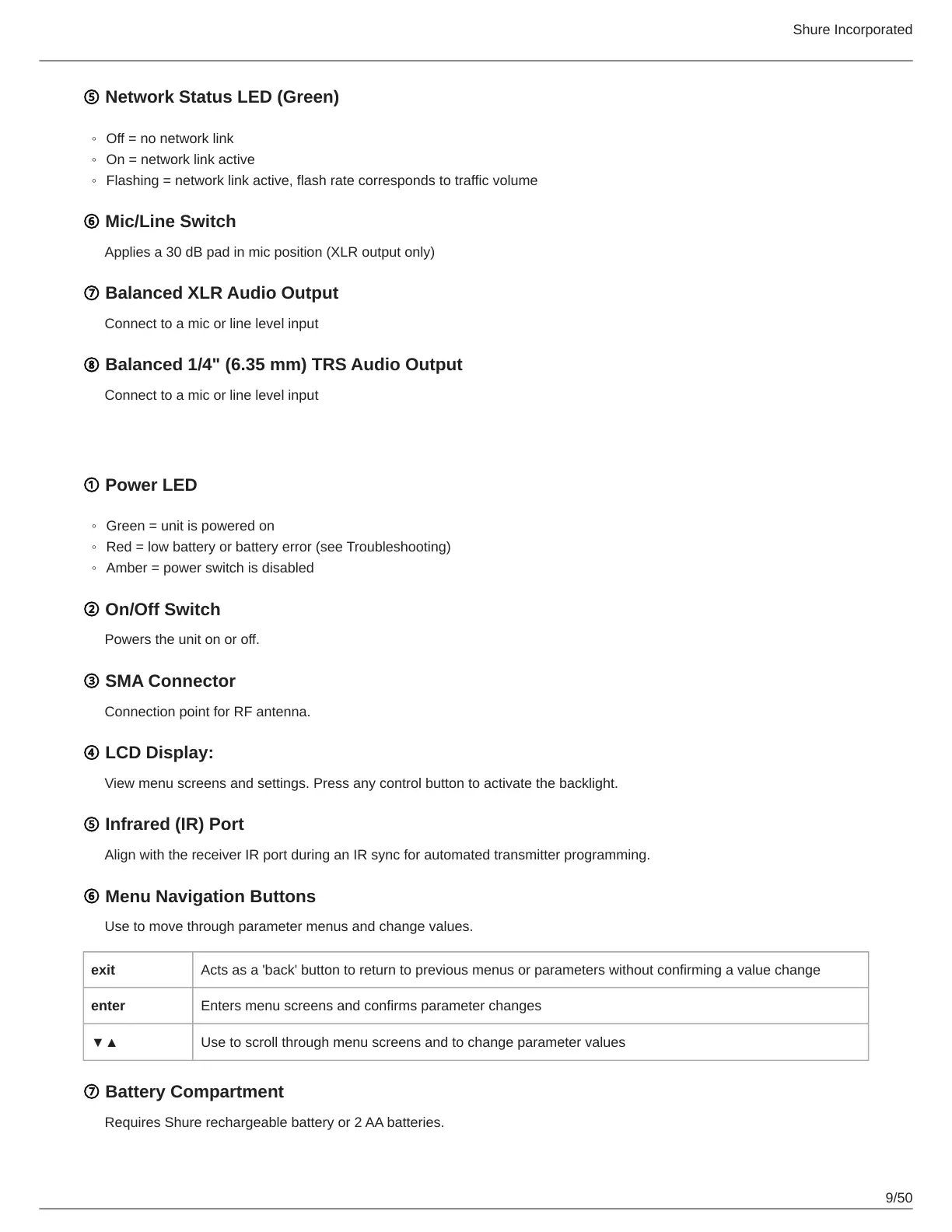 ⑧ Balanced 1/4" (6.35 mm) TRS Audio Output