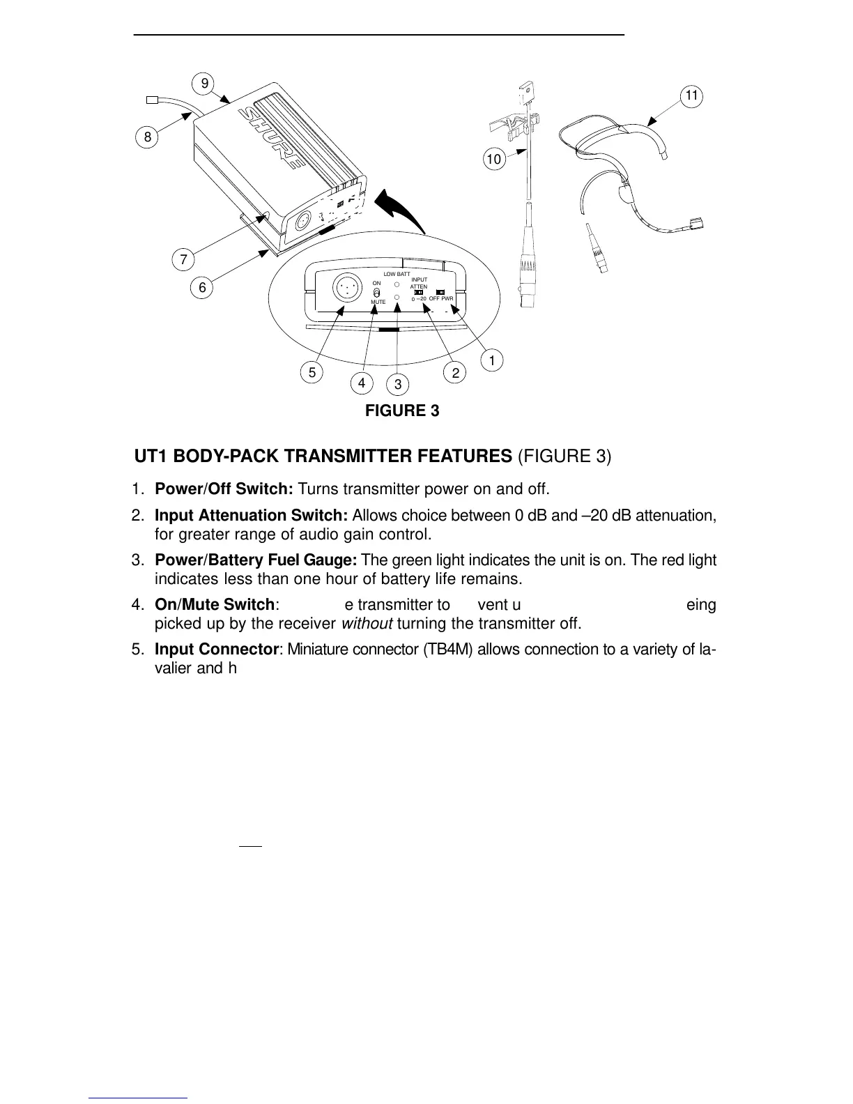 UT1 BODY-PACK TRANSMITTER FEATURES (FIGURE 3)