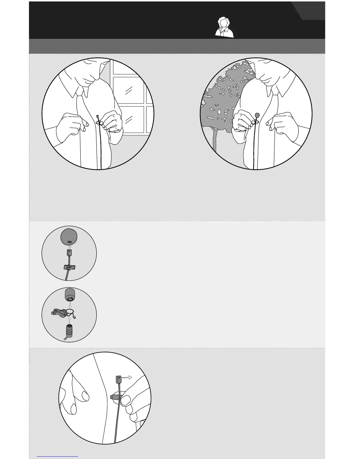 윈드스크린 및 타이 클립을 알맞은 위치에 끼