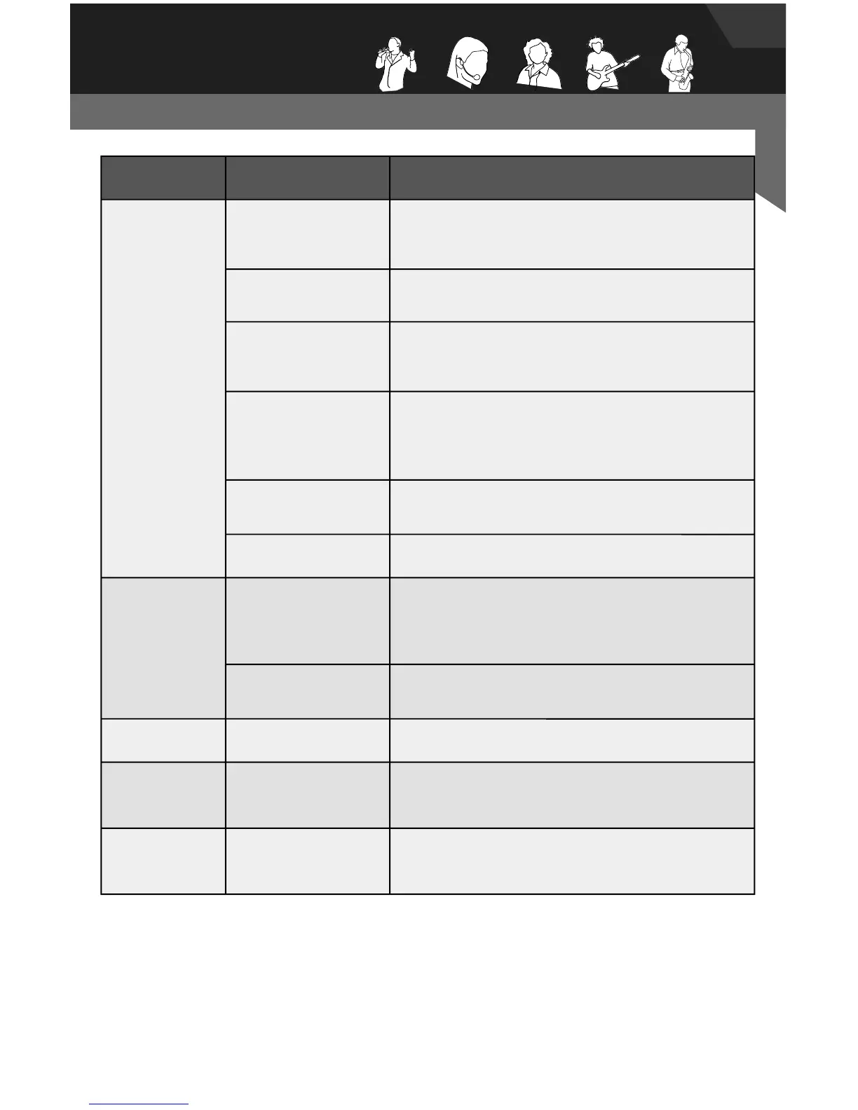 • Check cable connection between receiver and amplifier or mixer.