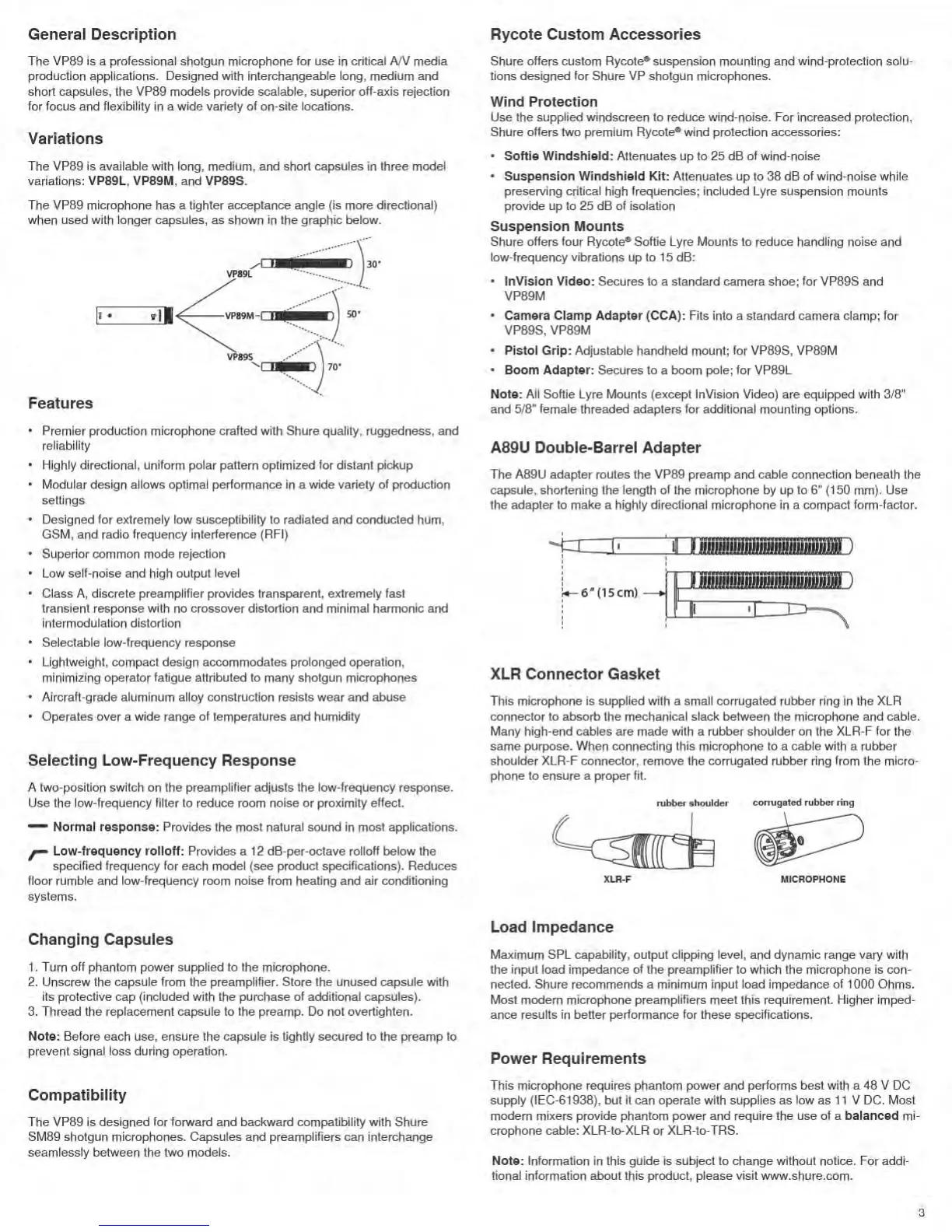 Shure VP89 - VP89 Microphone Overview; General Description; Variations; Key Features