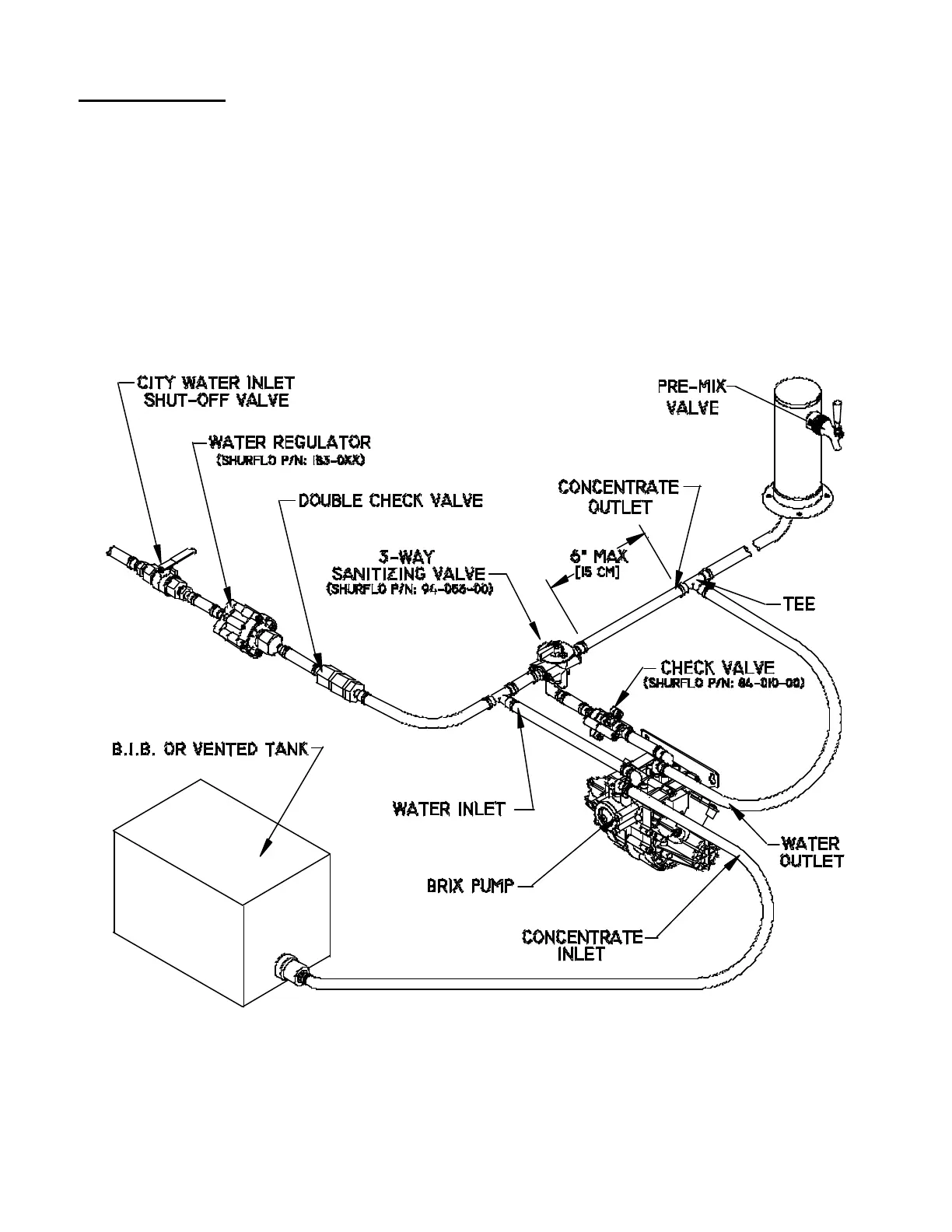 be used. A single line to the valve allows the concentrate and water to mix before being dispensed. Teed