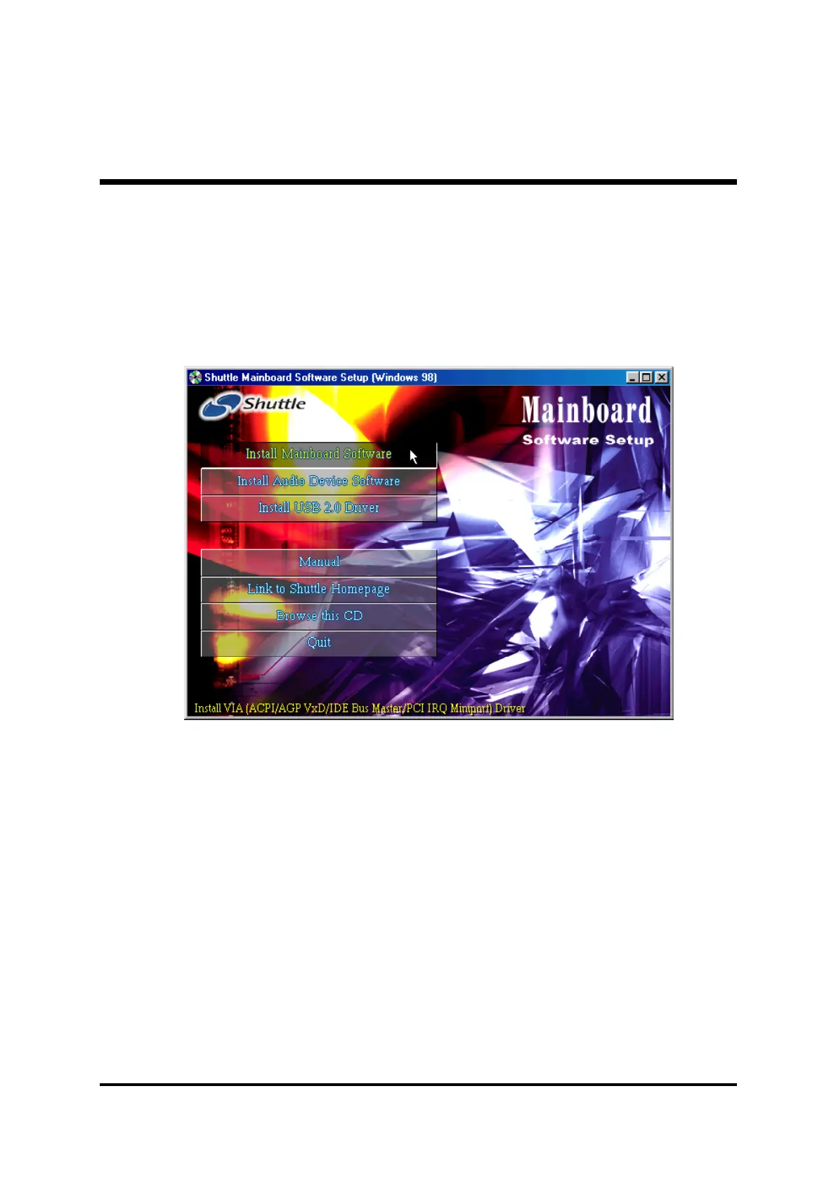icon in My Computer to bring up Shuttle Mainboard Software Setup screen.