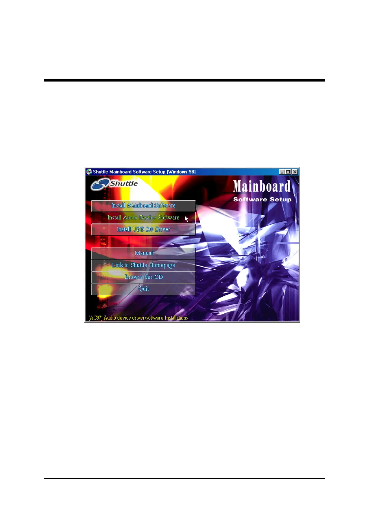 Autorun icon in My Computer to bring up Shuttle Mainboard Software