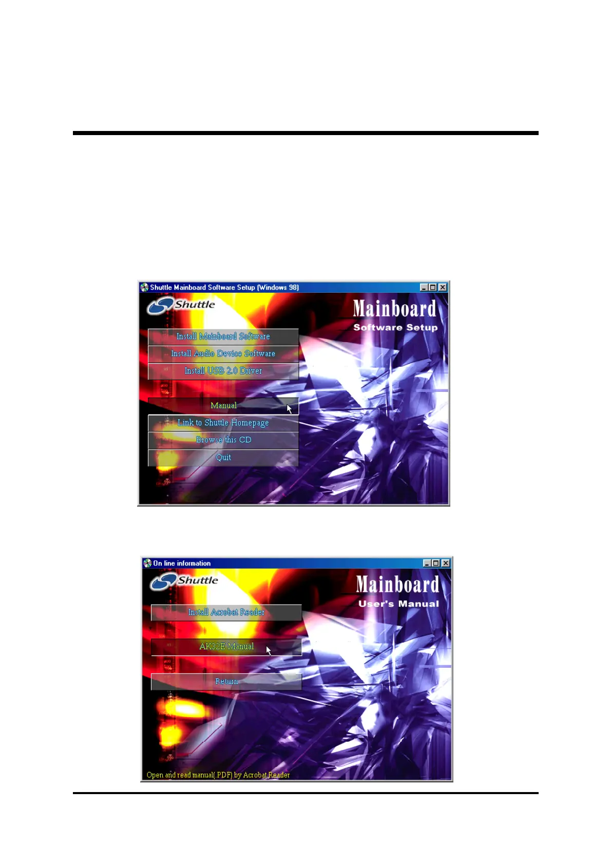Autorun icon in My Computer to bring up Shuttle Mainboard Software