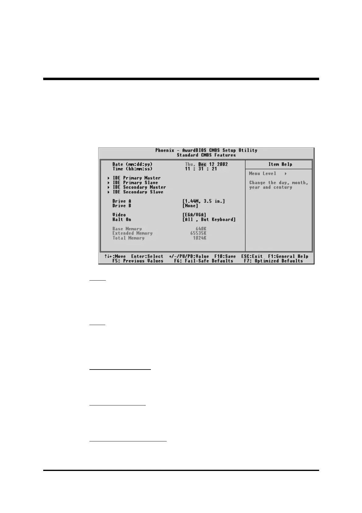 The items in Standard CMOS Setup Menu are divided into 10 catego-