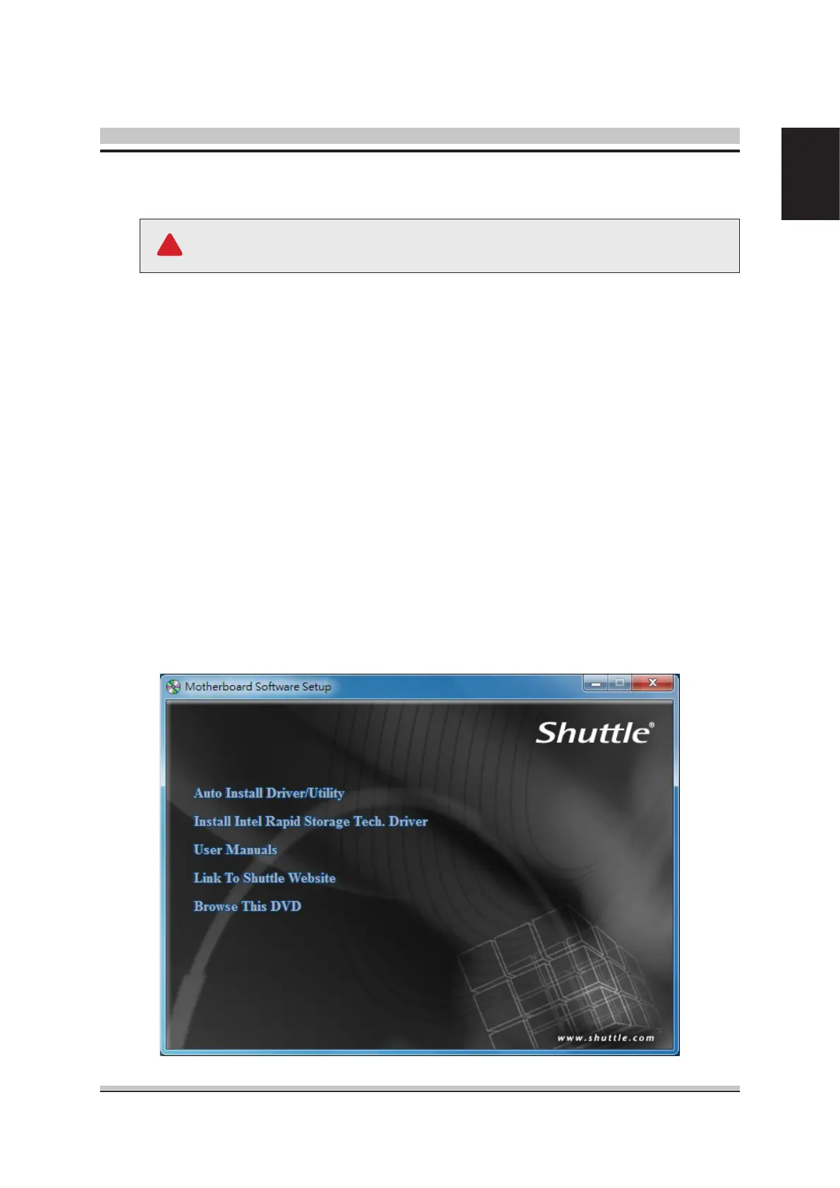 icon in My Computer to bring up Shuttle Mainboard Software Setup screen.