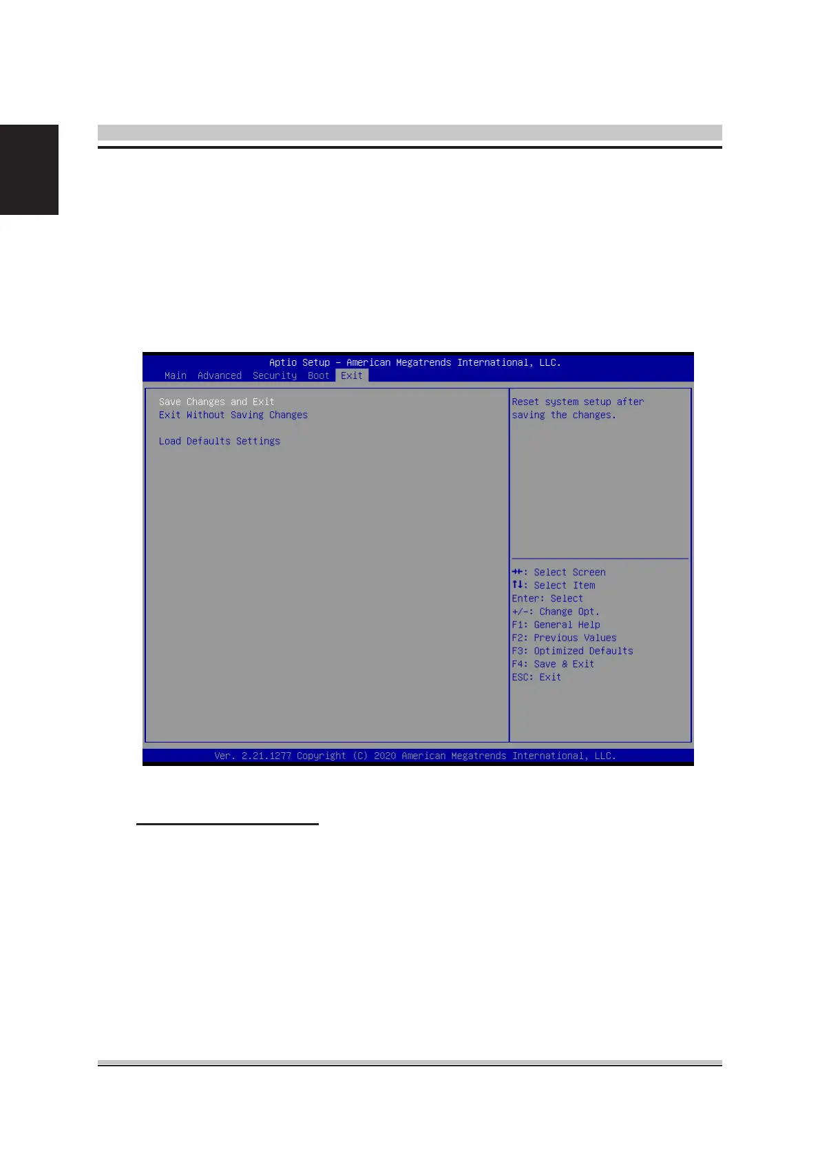 All Exit BIOS Setup options are described in this section.