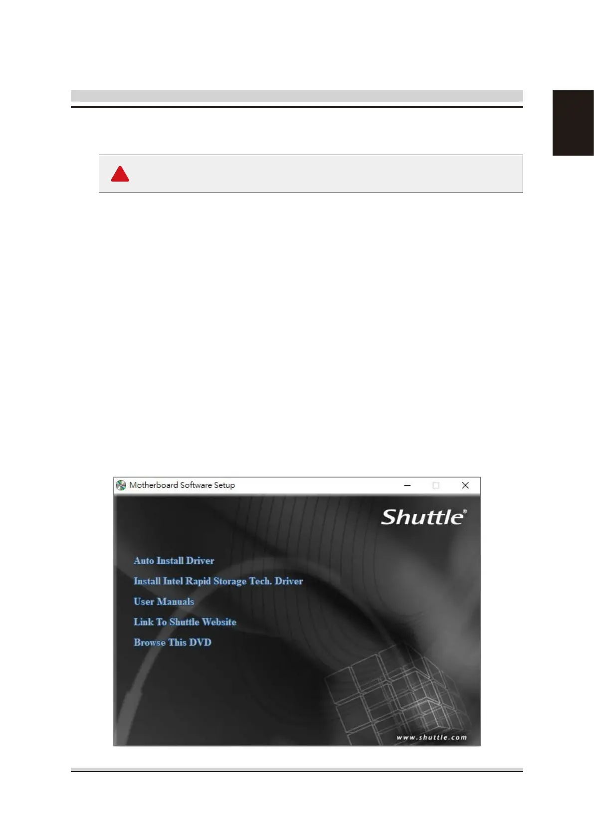 icon in My Computer to bring up Shuttle Mainboard Software Setup screen.