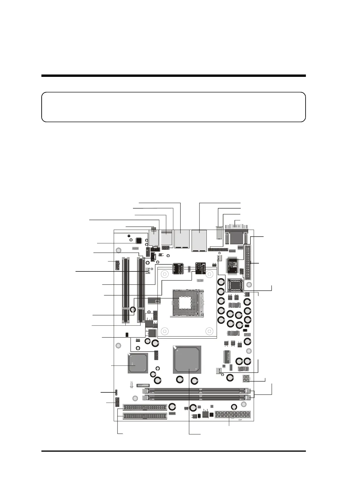 mainboard layout to help you to identify various jumpers, connectors, slots, and ports.