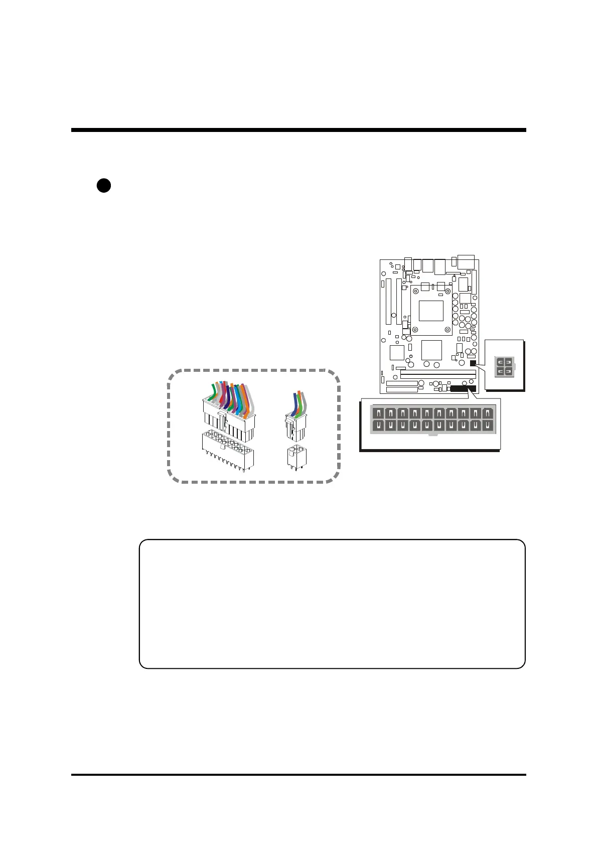 Note 1: The ATX power connector is directional and will not go in unless the