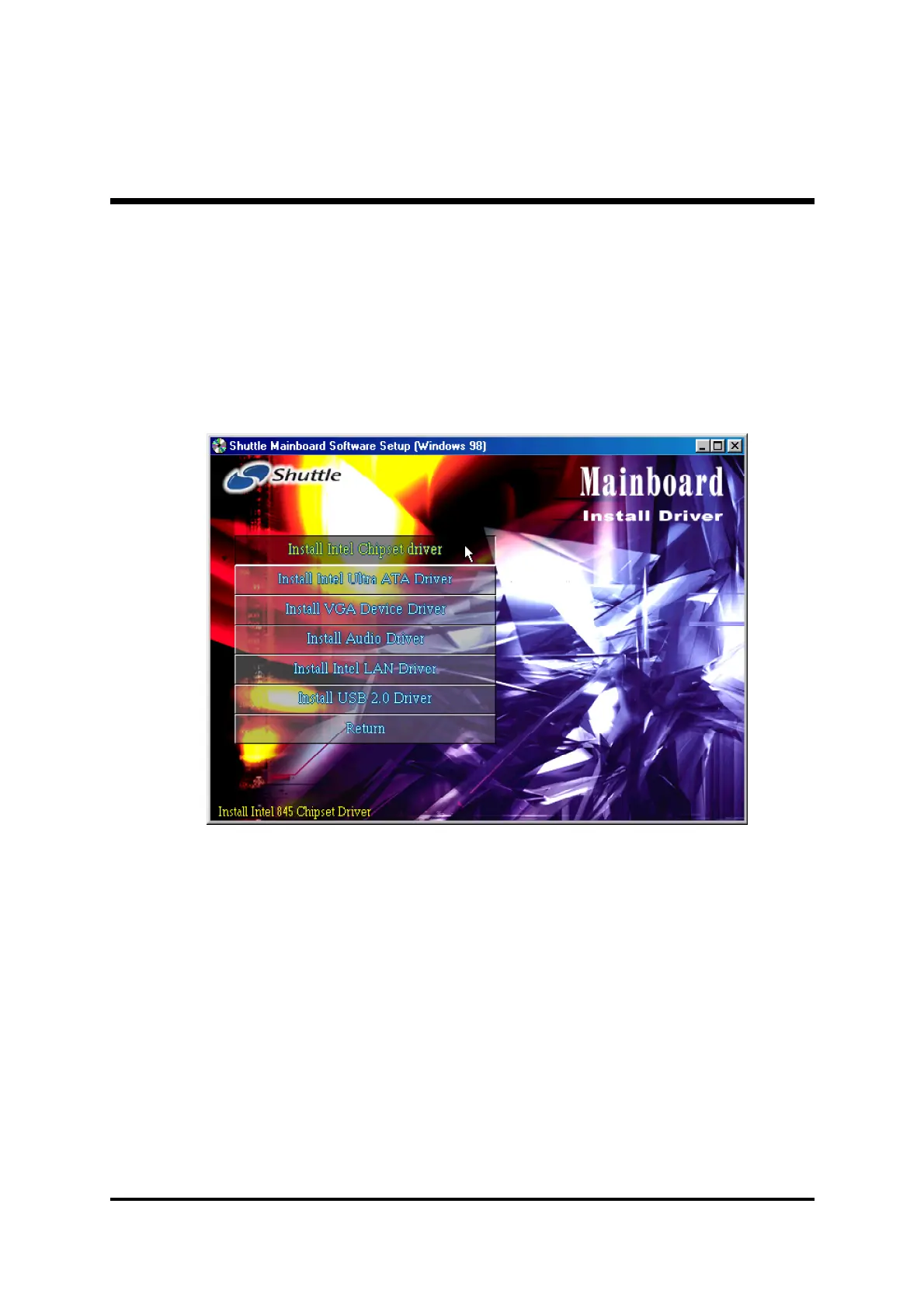 Select using your pointing device (e.g. mouse) on the "Install Intel Chipset