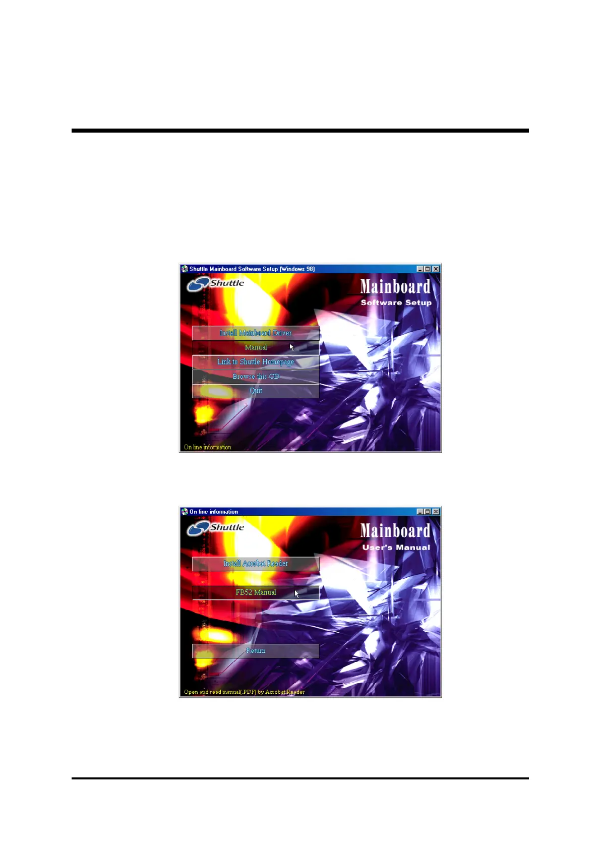 AutoRun icon in My Computer to bring up Shuttle Mainboard Software