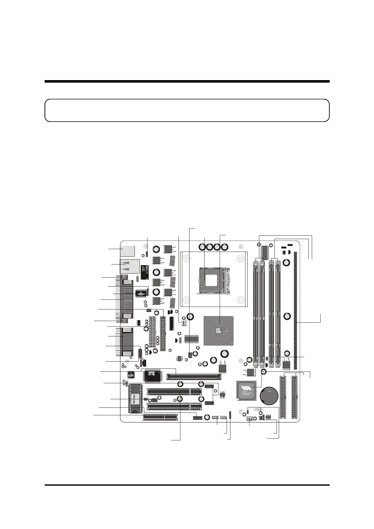 mainboard layout to help you to identify various jumpers, connectors, slots, and ports.