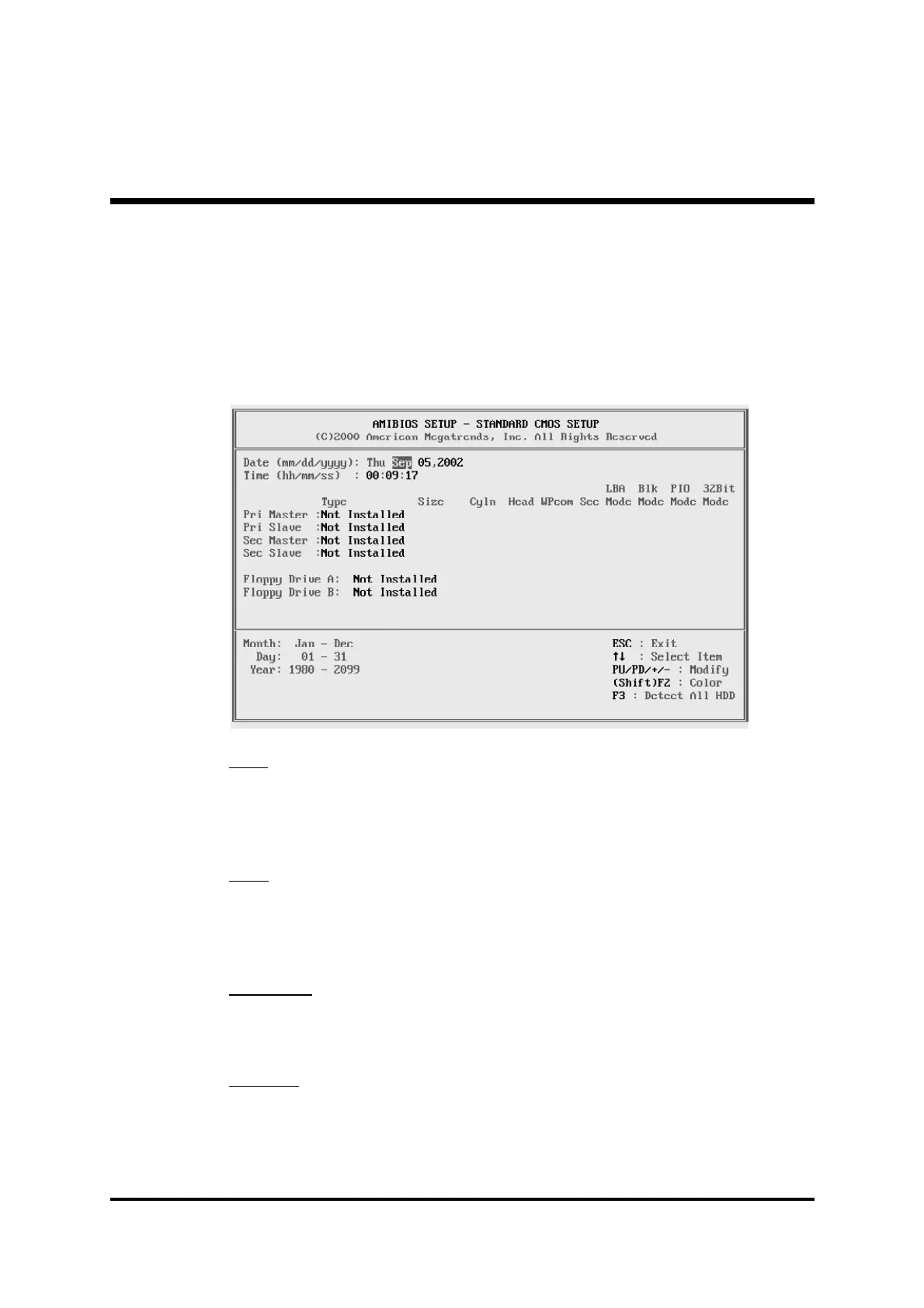 The items in Standard CMOS Setup Menu are divided into 8 categories.