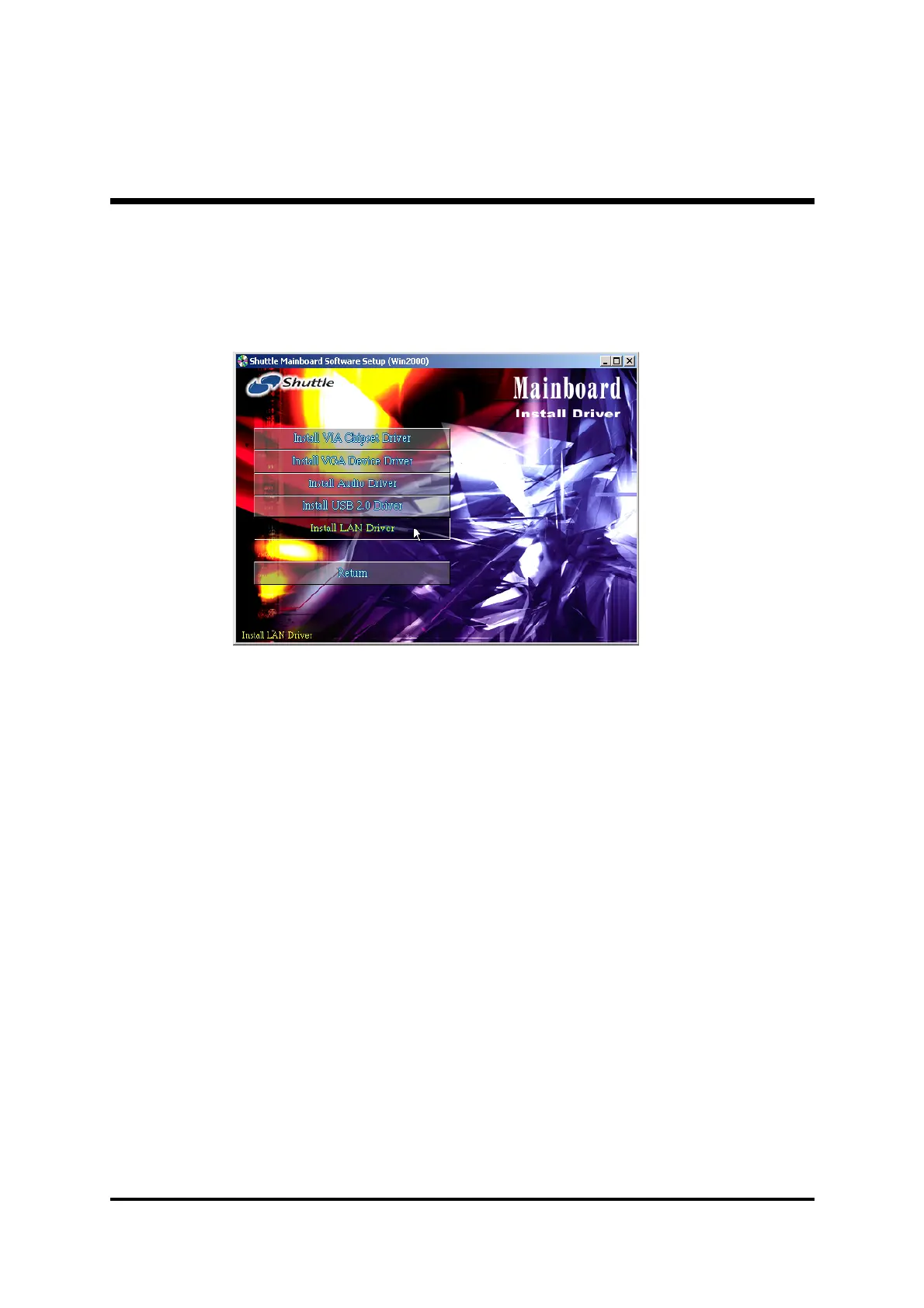 Select using your pointing device (e.g. mouse) on the āInstall LAN Driverā
