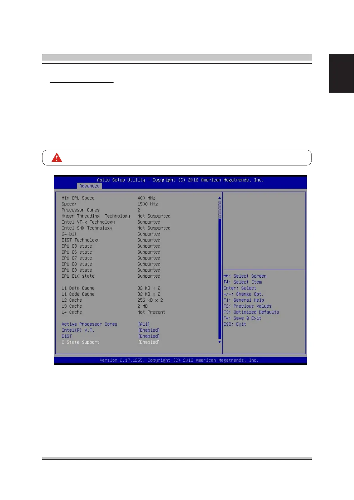 You can use this screen to select options for the CPU Conguration Settings. Use the