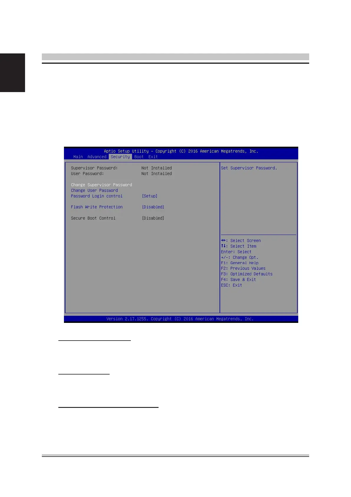 <Arrow> keys. All Security BIOS Setup options are described in this section.