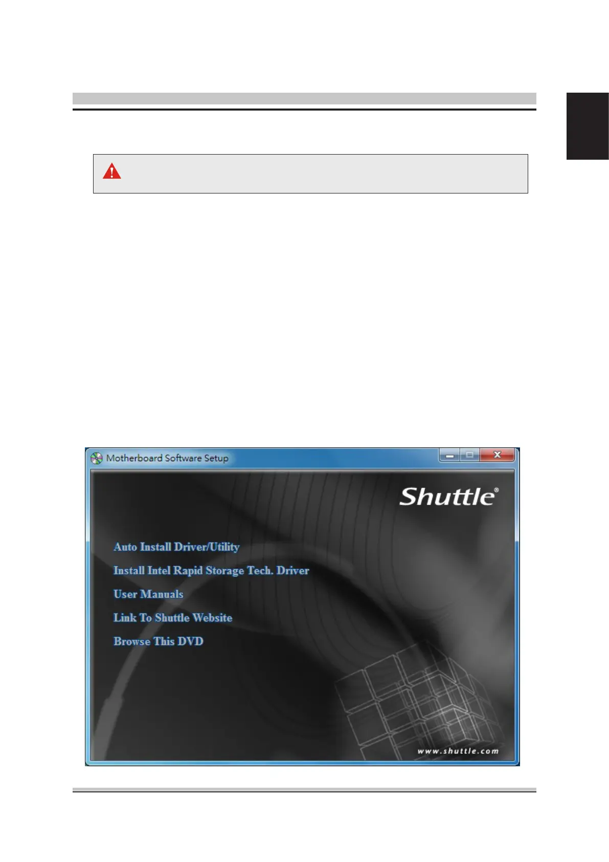 icon in My Computer to bring up Shuttle Mainboard Software Setup screen.